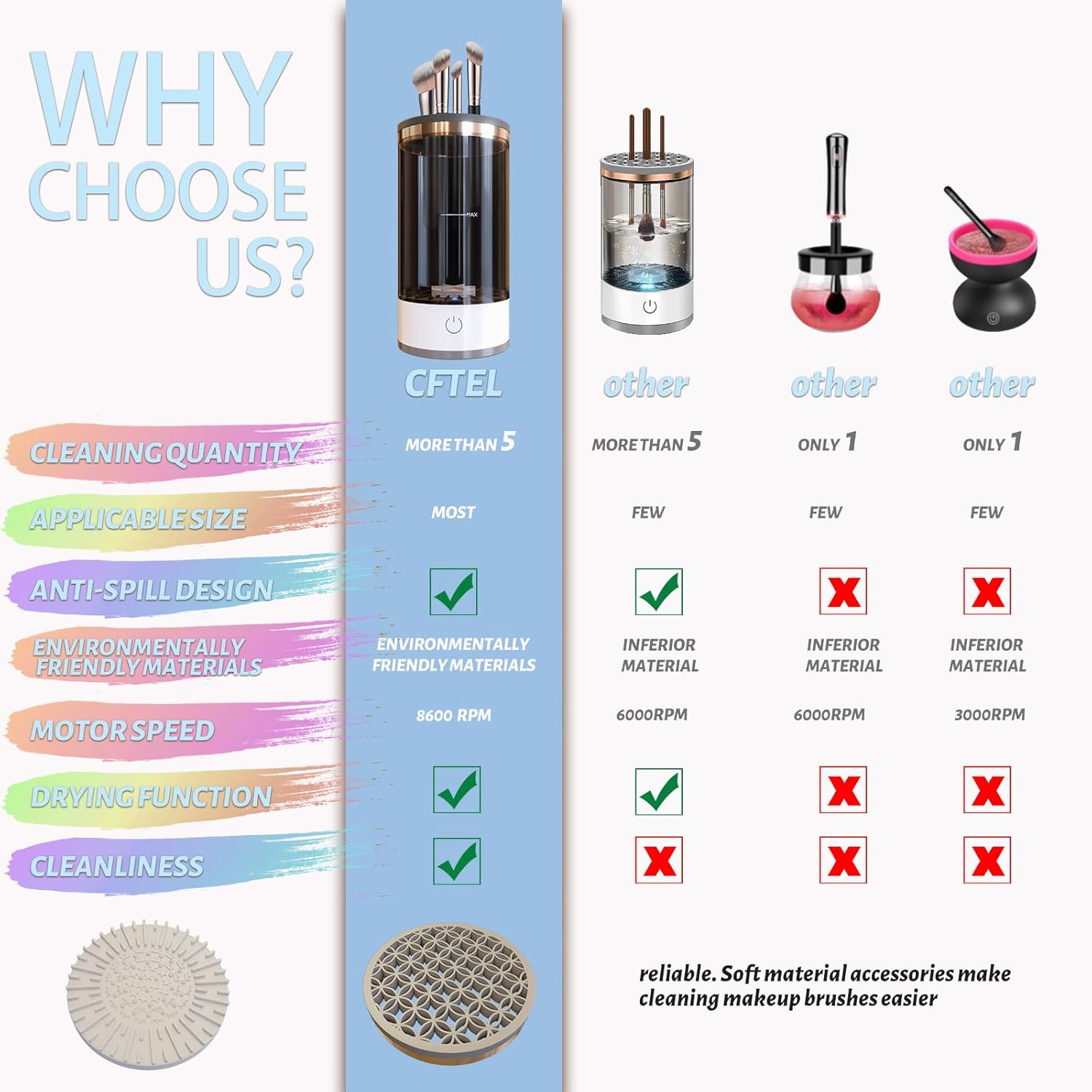 【High -quality Raw Materials】Compared to other products, our makeup brush cleaner machines use more high -level raw materials. So the surface of this make up cleaning machine has a higher luster and a better texture.
