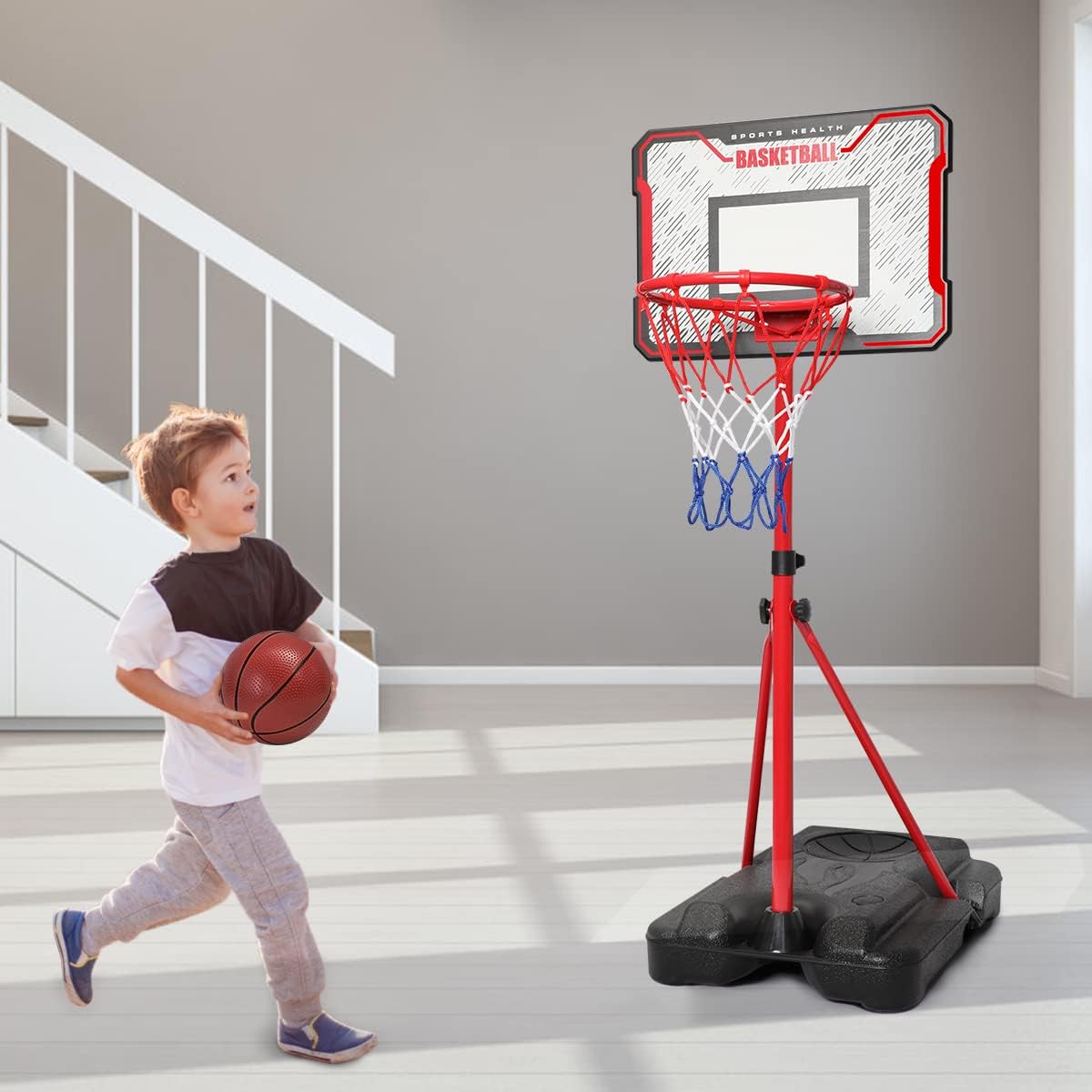 ๐ Height Adjustable Kids Indoor Basketball hoop Grow With Your Young Basketball Player. Meland portable basketball court for kids can be quickly and simply adjusted from 2.9 feet to 6.2 feet, this kids basketball hoop indoor & outdoor toys is perfect for growing toddlers age 3, 4, 5, 6, 7, 8, 9 years old.