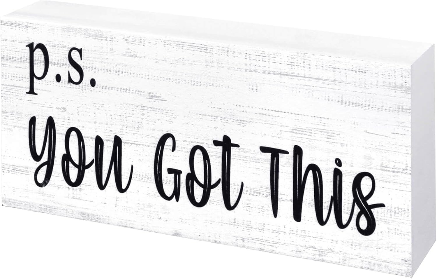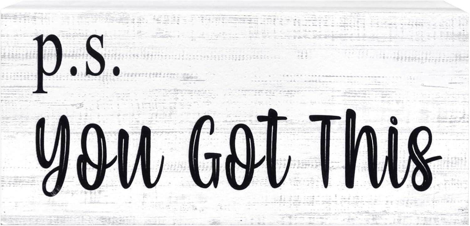 Motivational Home Office Desk Decor – Farmhouse Wooden Box Sign Gift for Women – P.S. You Got This(White)