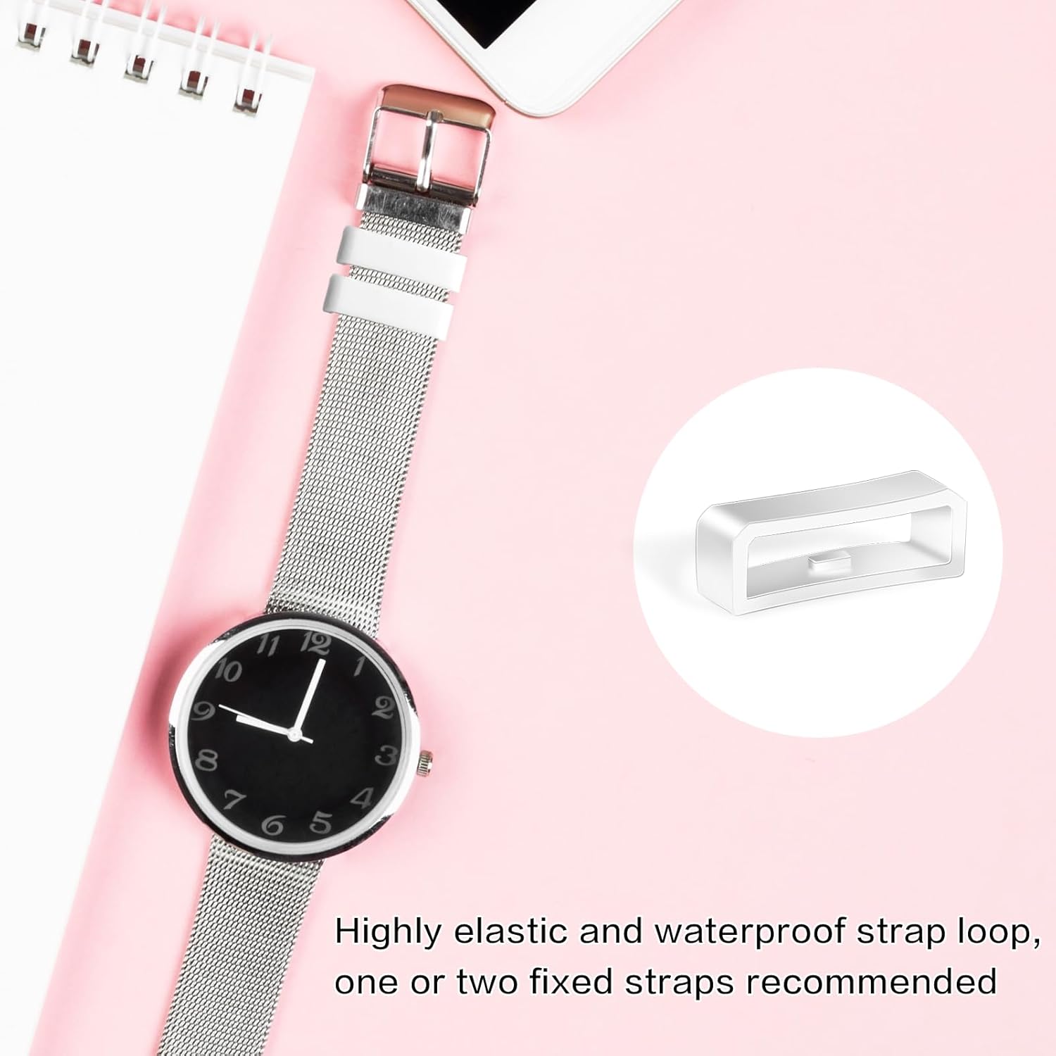 Mozeat Lens 6 PCS Watch Band Retainer Loops, White Silicone Watch Strap Holder Rings Replacement Parts Smartwatch Band Keeper Rubber Fastener Rings for Smart Sport Watches (Size:18mm/20mm/22mm)