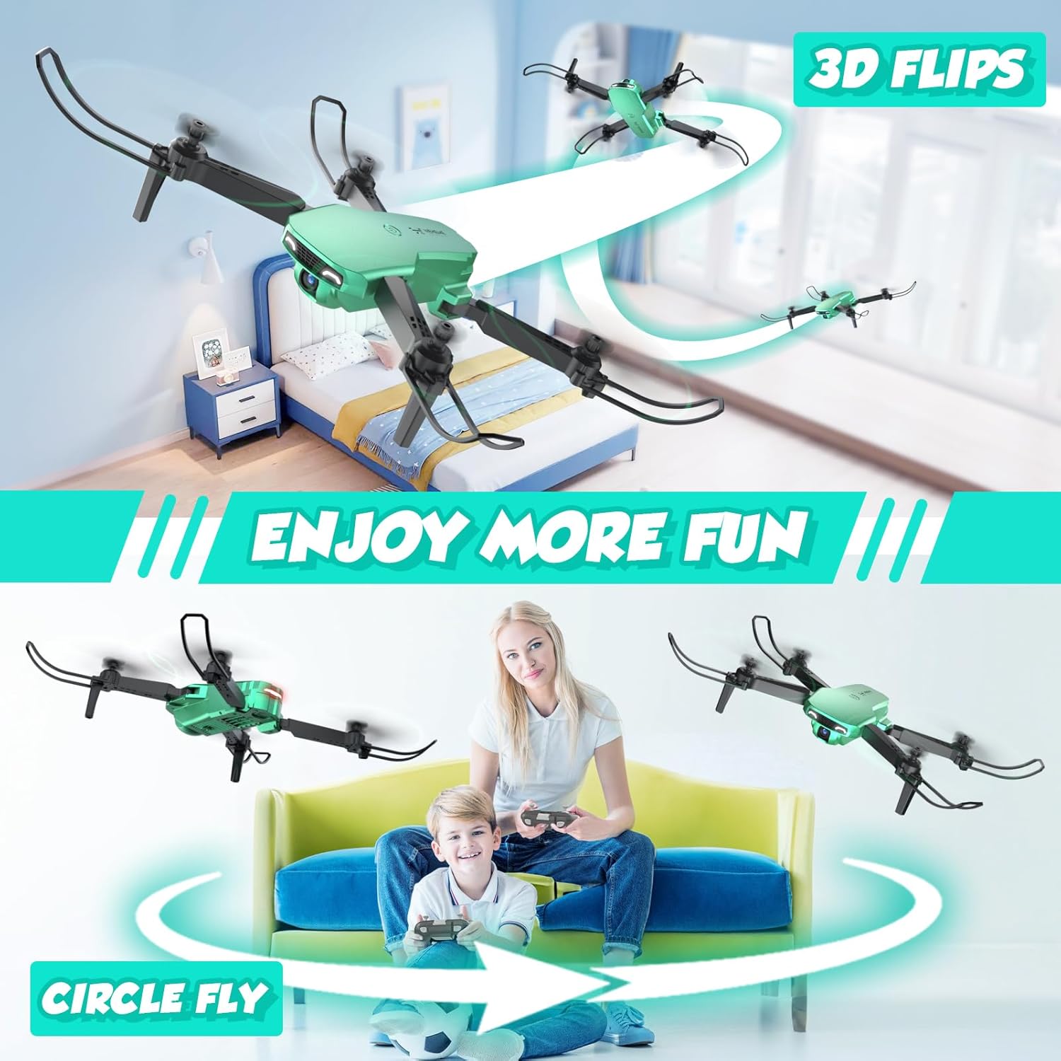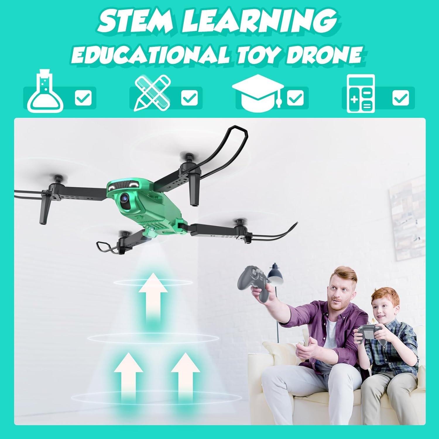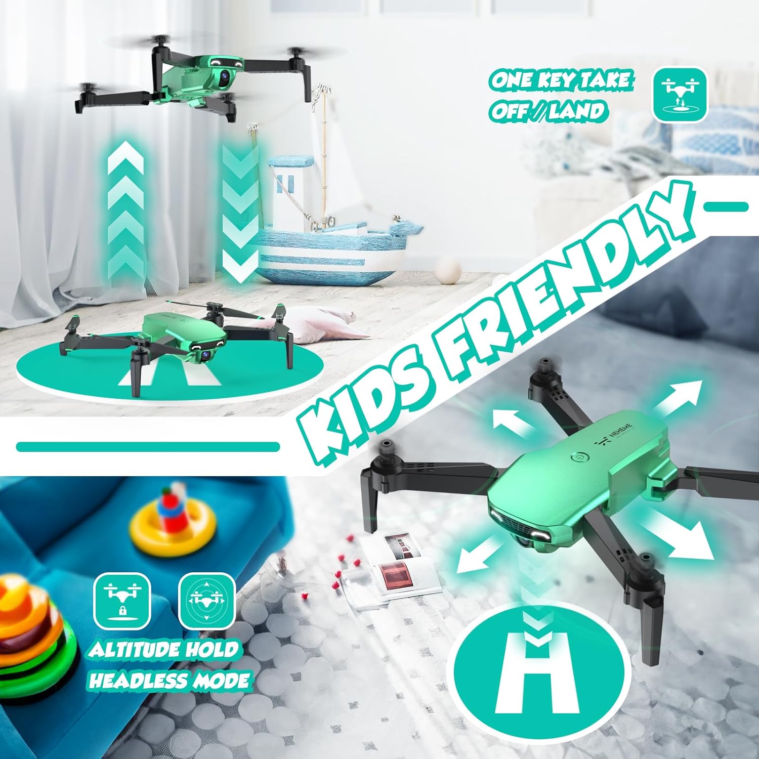NEHEME NH525 Drone with Camera for Kids, Foldable Mini Drones Toys for Boys with 1080P HD Camera, Christmas Birthday Holiday Gifts ideas for Boys, One Key Start, 2 Batteries, Upgraded Version, Green