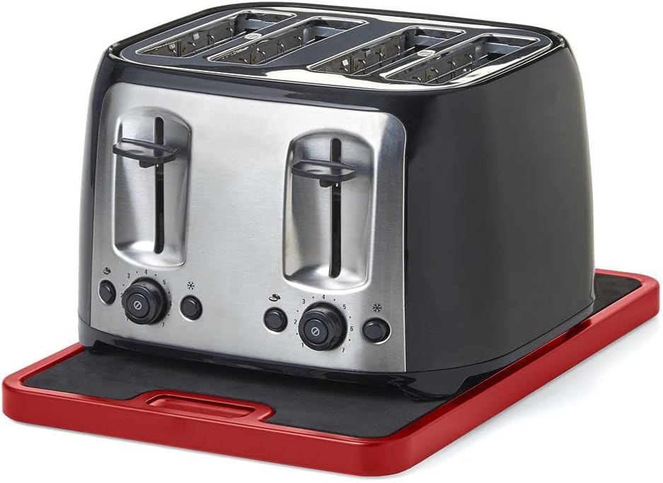 Nifty Medium Appliance Rolling Tray – Red, Home Kitchen Counter Organizer, Integrated Rolling System, Non-Slip Pad Top for Coffee Maker, Stand Mixer, Blender, Toaster