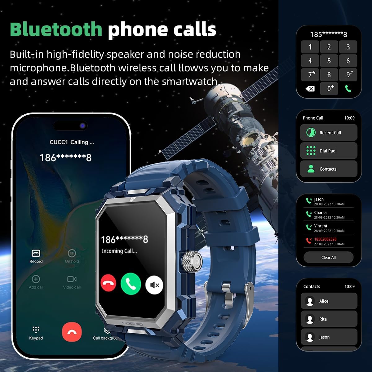 【Bluetooth Call and Message Reminder】Rogbid alpha gear smartwatch features a state-of-the-art chip processor that allows you to use the Bluetooth calling function by connecting to Bluetooth only once.Rogbid men’s smart watch has a built-in HI-FI speaker and microphone that supports Bluetooth to make and receive calls. The rogbid Men’s outdoor watch can receive messages sent by WhatsApp, Facebook, LINE and more. Free your hands from your cell phone and never miss important text messages .