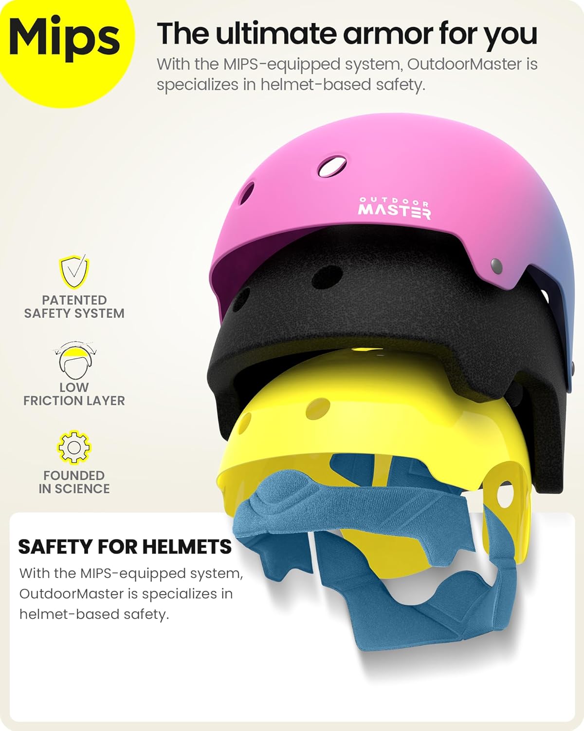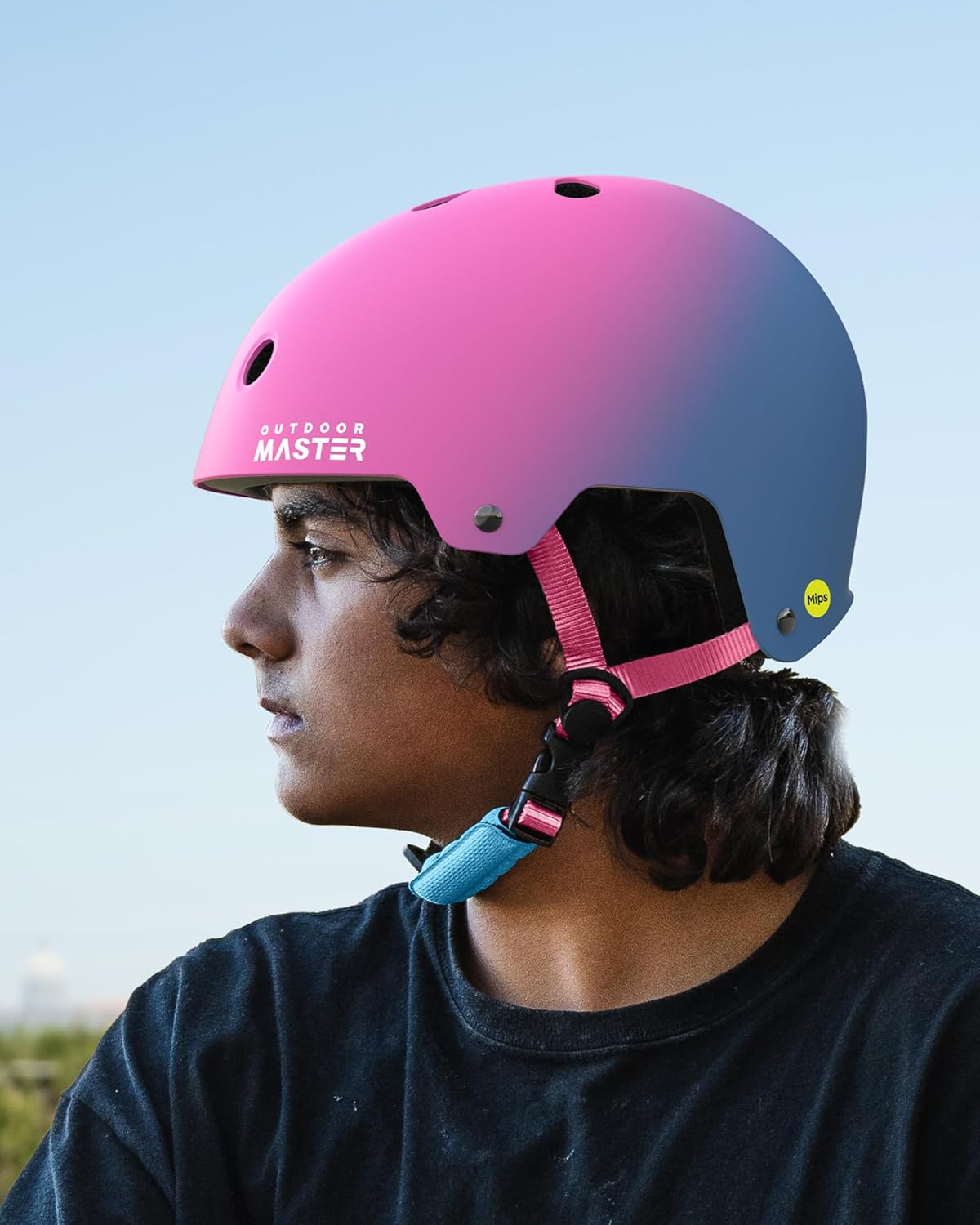 OutdoorMaster MIPS Skateboard Helmet – Two Removable Liners Ventilation Multi-Sport Scooter Roller Skate Inline Skating Rollerblading for Kids, Youth & Adults