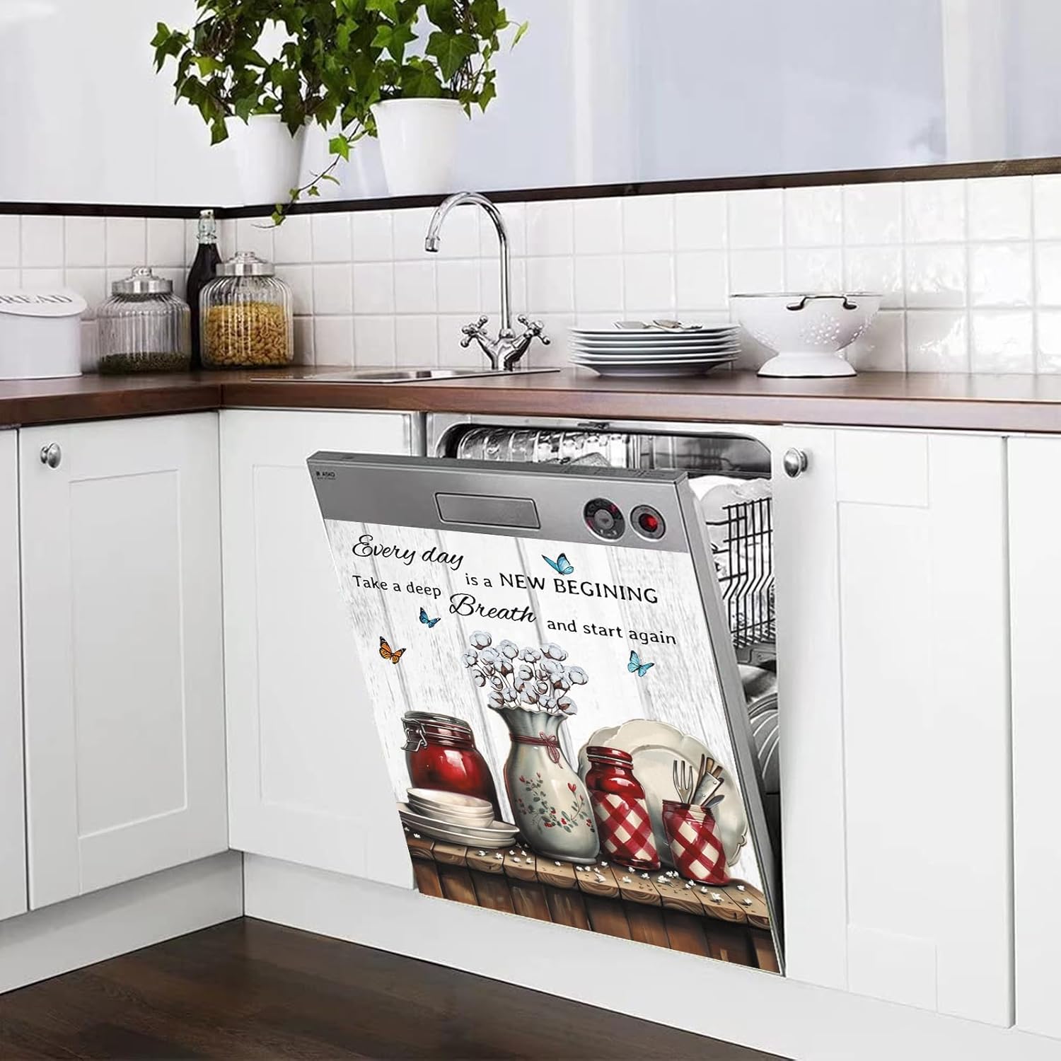 Size:This Instant Decor Dishwasher Covers are available in Two Sizes: S- 23 W x 17 H inches; M- 23 W x 26 H inches.Easy trimmable to fit your dishwashers.Dishwasher refinishing cover trim to size and stick.