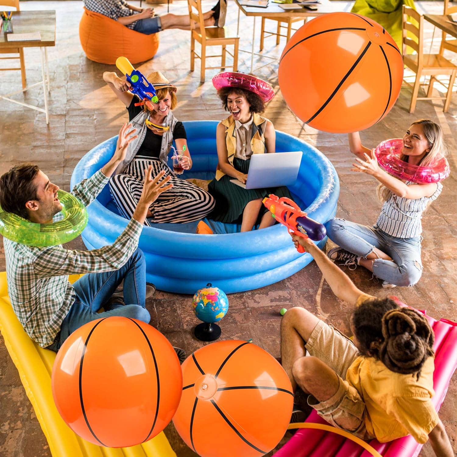 Package content: you will get 8 pieces of large inflatable basketballs, each basketball measuring approx. 24 inch before inflation, 20 inch after inflation, large enough to meet your playing and party decoration needs, you can also share them with your family and friends.