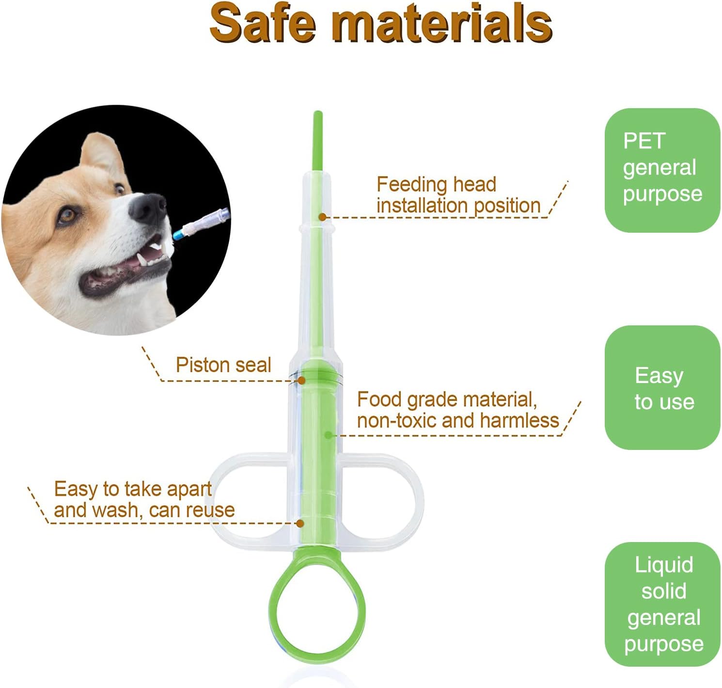 Pet Medicine Feeder Syringe Cat Dog Medicine Feeding Tool Pill Dispenser Suit with Soft Tips Reusable Pet Pill Tablet Versus Control Rods(Green)