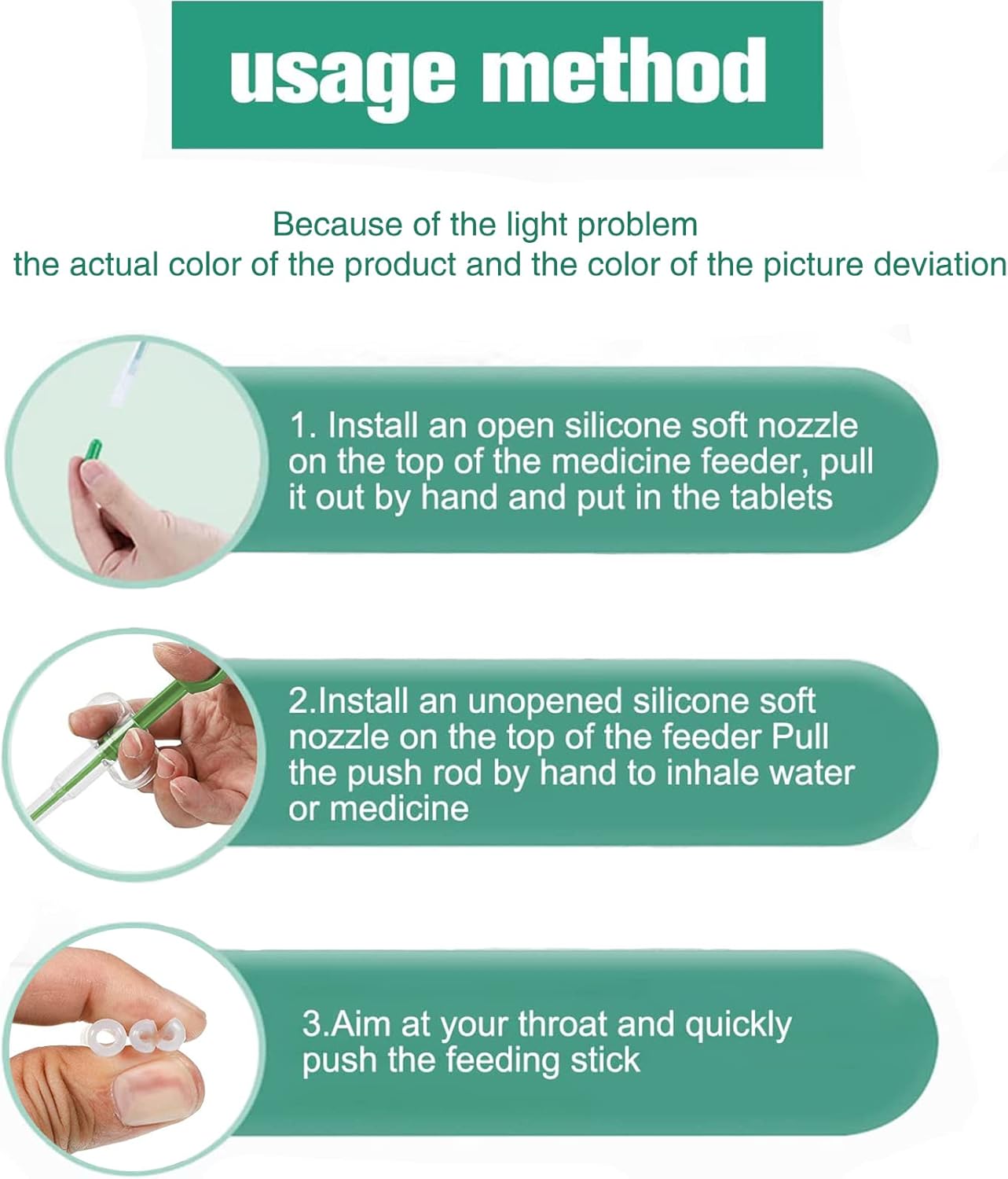 Size: 8.7 x 3.5 inches Product Color:Green Material: The pet feeding syringe adopts soft silicone hose, The silicone tips are soft and safe for pet’s teeth and gums. These pet pill feeders are durable to use for a long time, you can reuse them after cleaning. Widely Application: 1.These pet medicine feeder syringe are suitable to feed capsules, pills, powder and liquid medicine for your small pets 2. Also for experimental use and industrial use. Notes: 1. Due to the light and screen difference, the item’s color may be slightly different from the pictures. 2. Please allow 1-2 cm differences due to manual measurement. 3. If you have any questions or have problems with the products you received, please contact us in time.