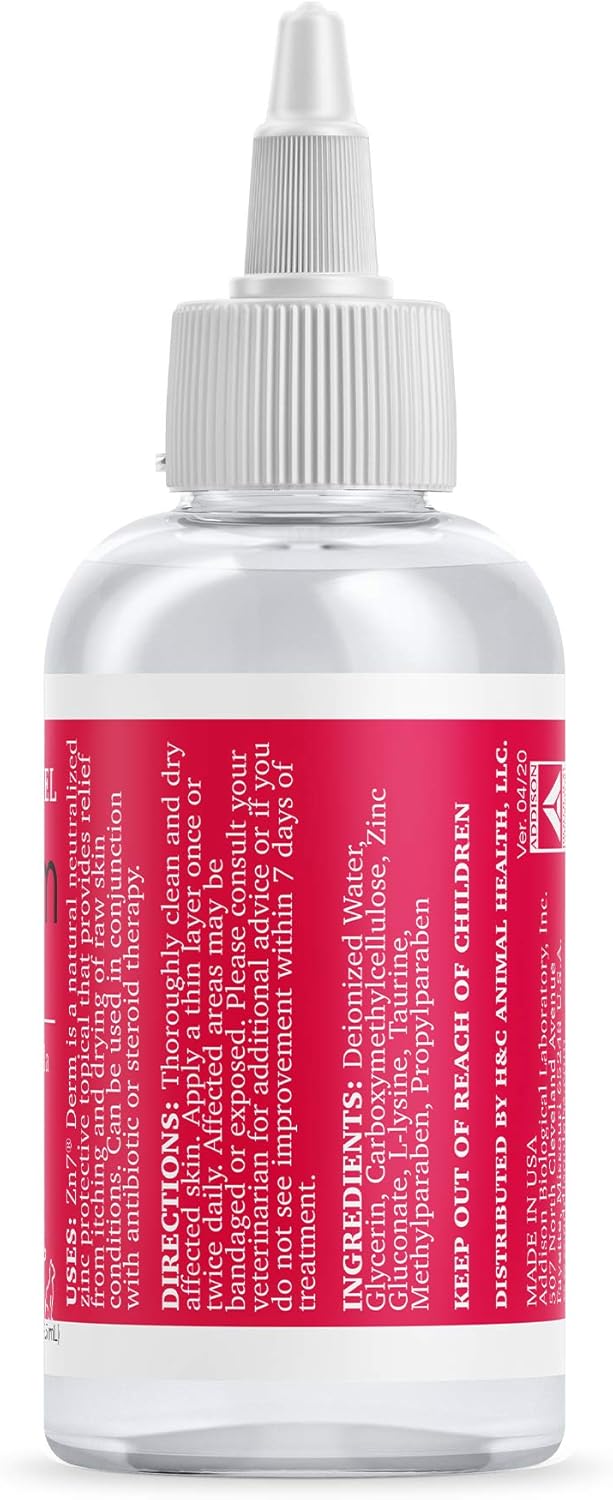 Pet Skin Care Gel Zn7 Derm with Neutralized Zinc for Dogs, Cats, Bovine, Exotics and Companion Animals (1oz), red/White