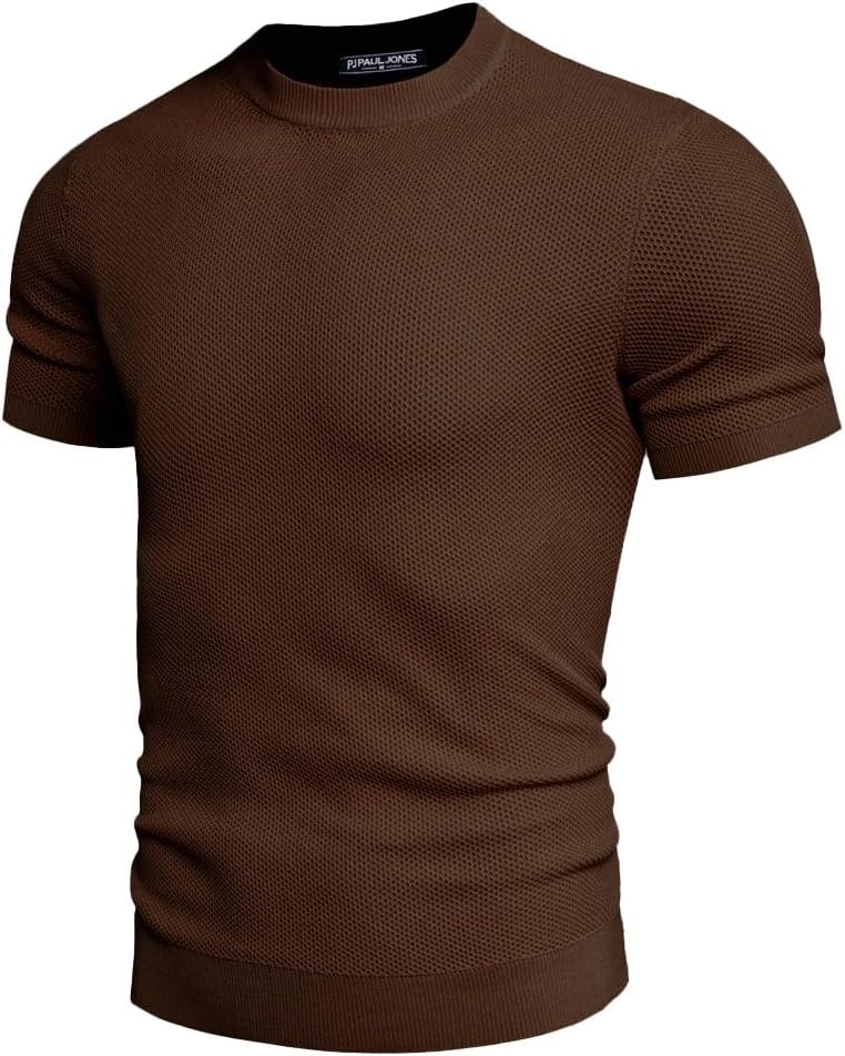 PJ PAUL JONES Men’s T-Shirts Casual Knit Short Sleeve Crewneck Honeycomb Waffle Solid Knitted Pullover Tees