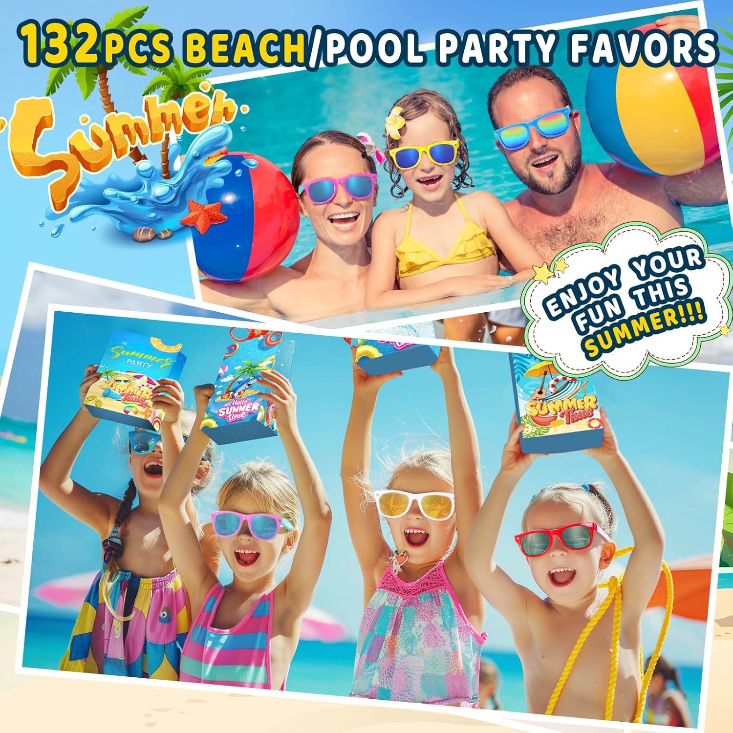 Pool Party Favors Beach Party Favors – 132PCS Summer Beach Pool Toys for Kids Include Beach Balls, Kids Sunglasses Bulk, Bubble Wands…Pool Party Supplies for Summer Birthday Party for Kids 4-8 8-12