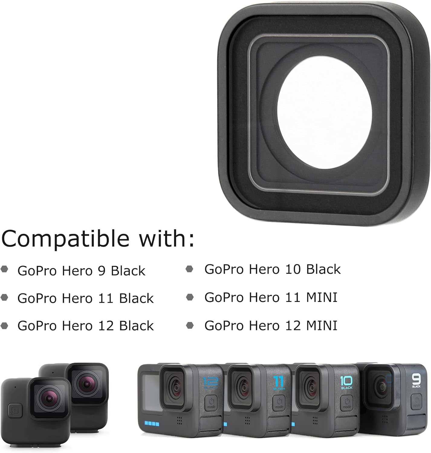 This lens replacement is compatible with GoPro Hero 9 Black, Hero 10 Black, Hero 11 Black, Hero 11 Black Mini, Hero 12 Black, Hero 12 Black Mini.