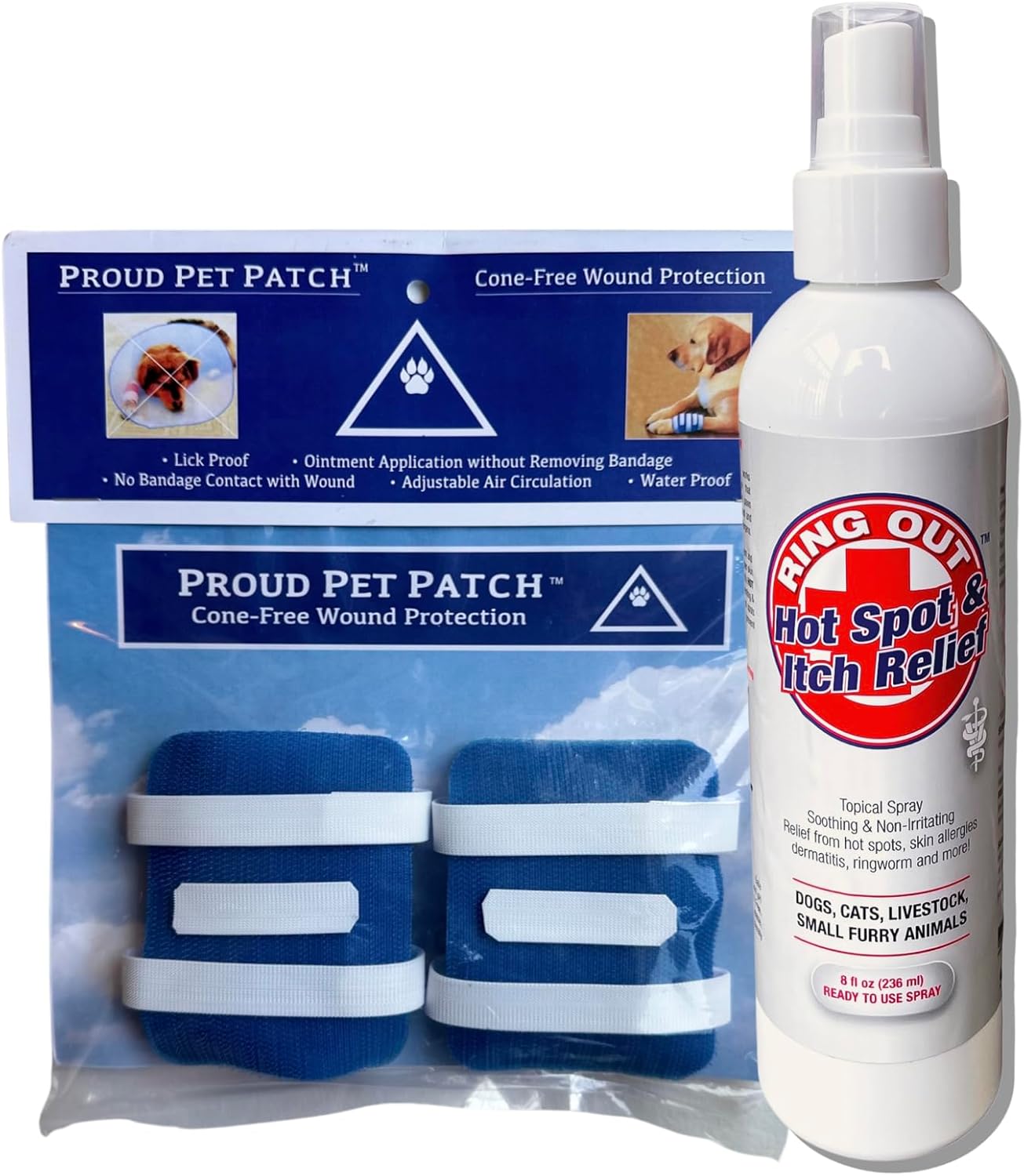 Is your furry friend recovering from a minor injury or surgery? Say goodbye to the discomfort and stress caused by traditional cones with our innovative and patented Proud Pet Patches! Use in place of a cone or in conjunction with the cone depending on the situation. Engineered with your pet’s well-being in mind, this dog bandage provides a gentle and effective solution to keep your canine companion safe and comfortable during the healing process.