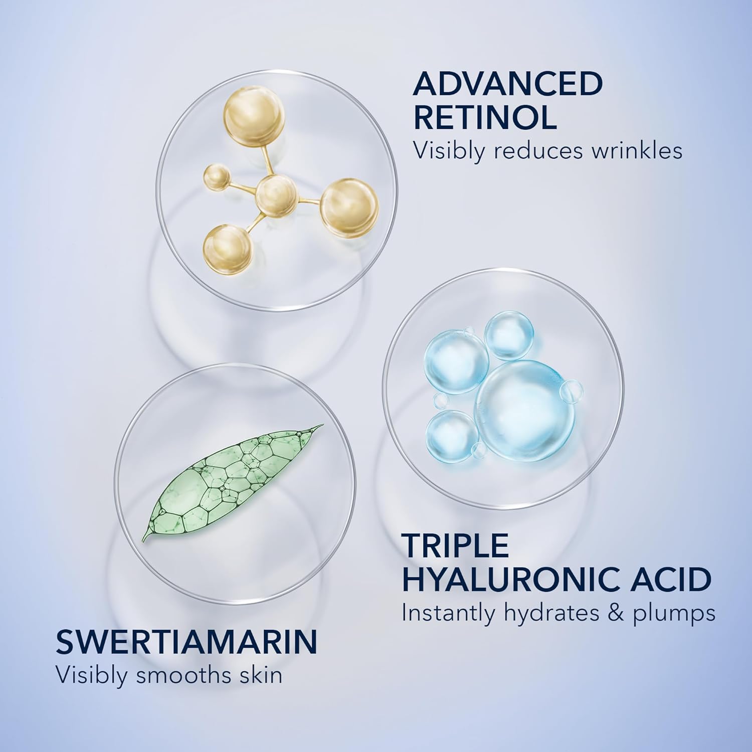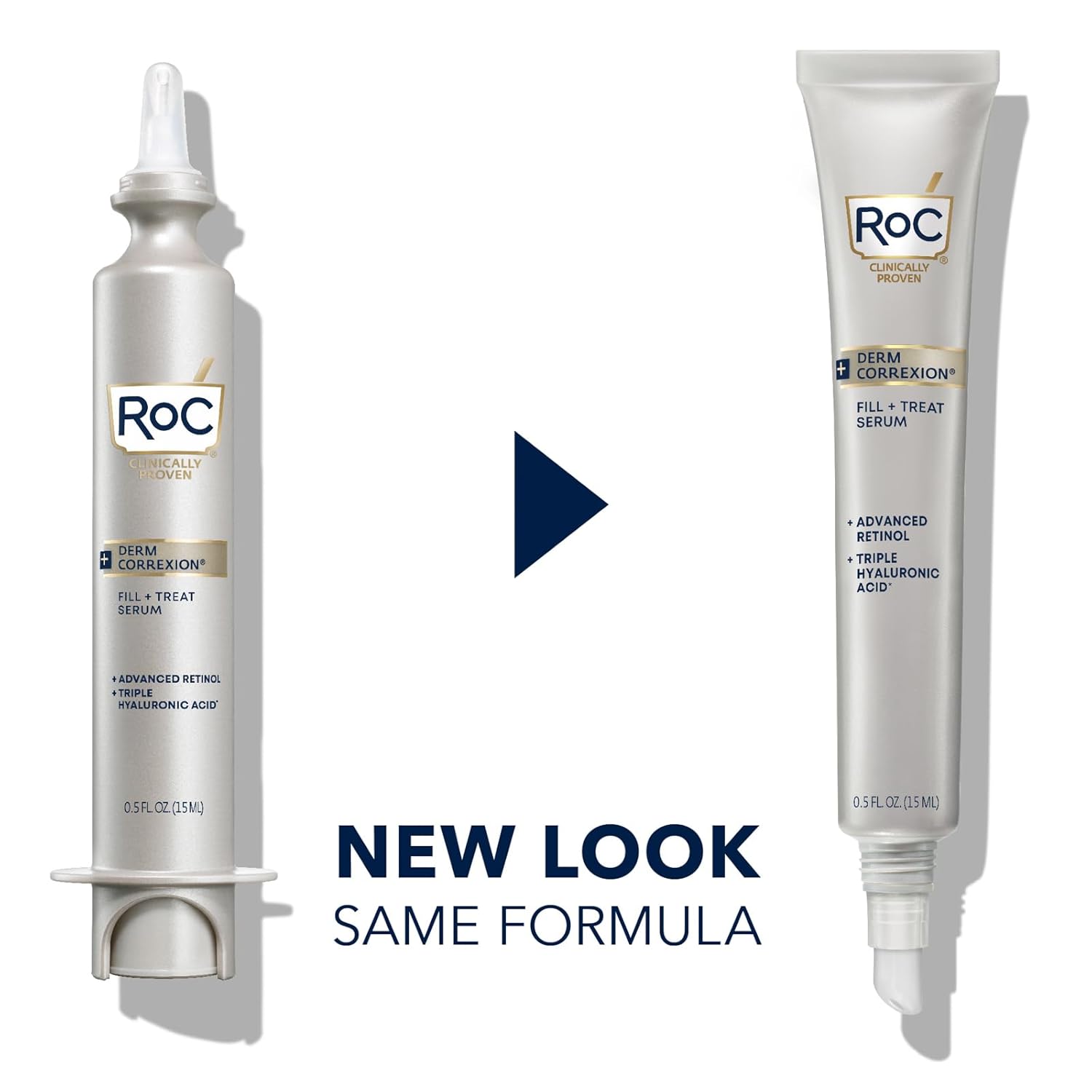 WRINKLE FILLER TREATMENT: Developed with Dermatologists & Plastic Surgeons, this serum contains 3 forms of Hyaluronic Acid to instantly plump skin & fill in the look of wrinkles. Over time, pure RoC Retinol & Swertiamarin provide lasting improvements to deliver visibly smoother-looking skin. Refill available.