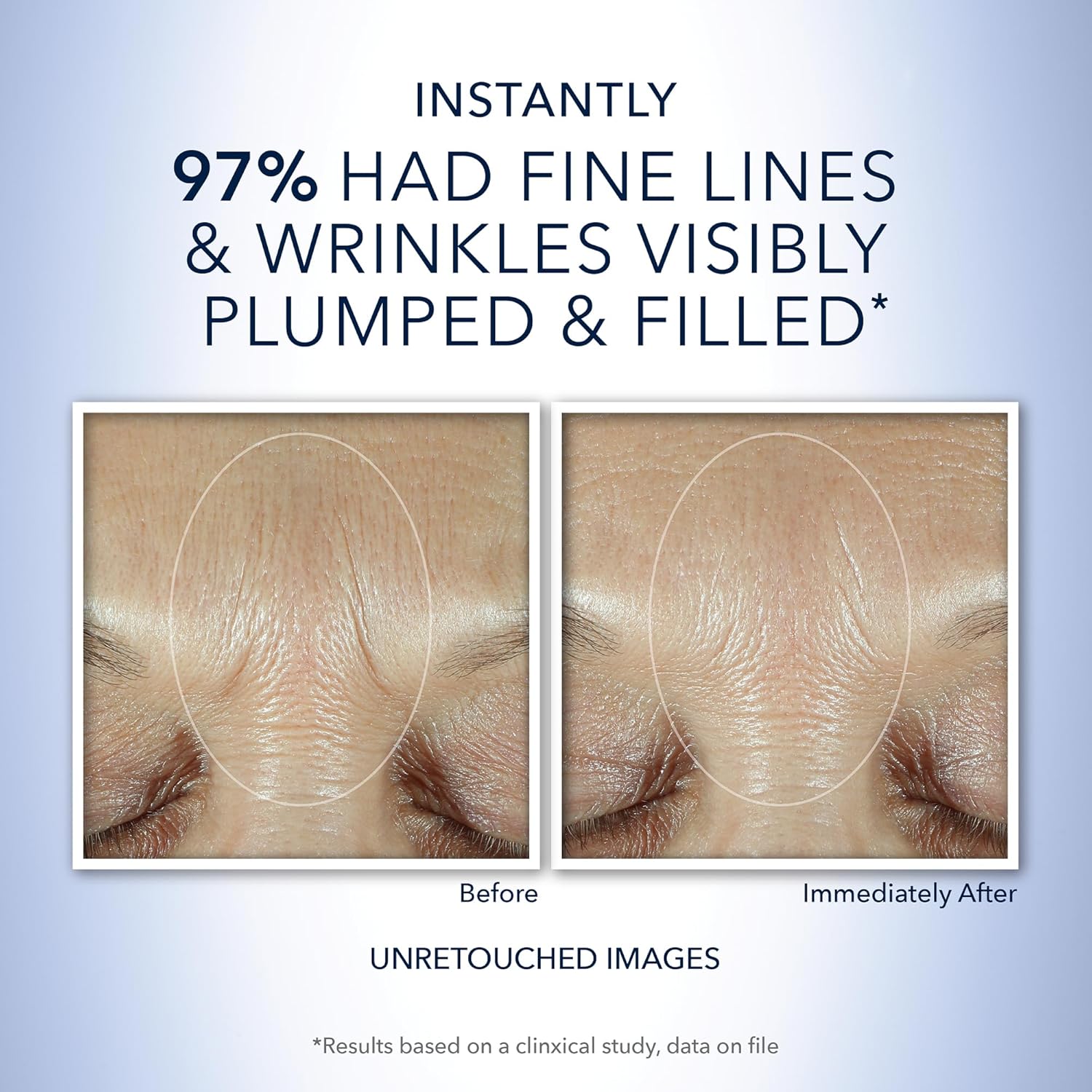PROVEN RESULTS: In a clinical study, 97% of participants instantly had fine lines & wrinkles visibly plumped & filled – no injections needed. After 4 weeks, 100% had a visible improvement in the look of hard-to-treat wrinkles. Dermatologist tested. Fragrance-free. Paraben-free. Non-comedogenic. Phthalate-free.