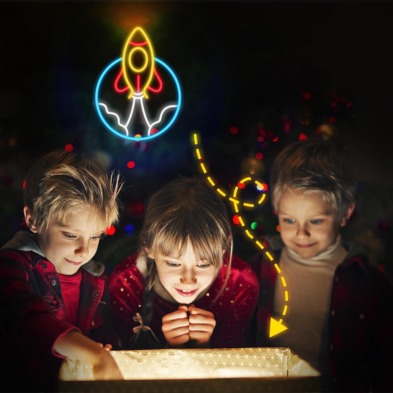 【PERFECT DECORATION AND GIFT】 This rocket neon sign is an ideal decoration for kids’ rooms, bedrooms, living rooms, boys’ playroom, gaming room, man cave, birthday parties, Universe theme parties, bars, hotels, stores, clubs, etc. It’s also a perfect gift for teen boys and girls.