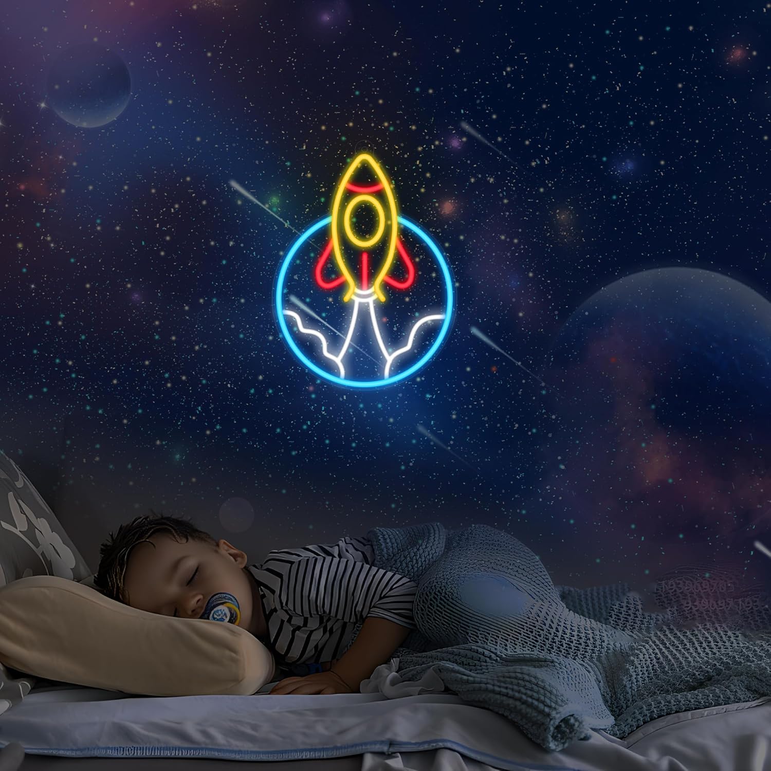 【PERFECT DECORATION AND GIFT】 This rocket neon sign is an ideal decoration for kids’ rooms, bedrooms, living rooms, boys’ playroom, gaming room, man cave, birthday parties, Universe theme parties, bars, hotels, stores, clubs, etc. It’s also a perfect gift for teen boys and girls.