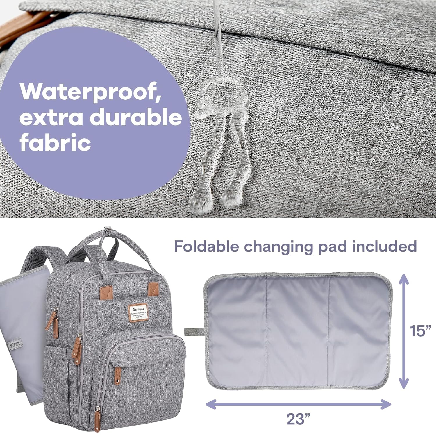 RUVALINO Diaper Bag Backpack, Multifunction Travel Pack Maternity Baby Changing Bags, Large Capacity, Waterproof, Gray