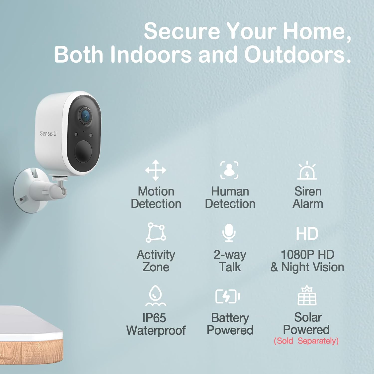 Sense-U Smart Baby Monitor Camera 2 for Both Indoor and Outdoor Use, PIR Motion Detection, 1080P HD, 2-Way Audio, Night Vision, Solar-Powered with Long Battery Life, Weatherproof, No Monthly Fee