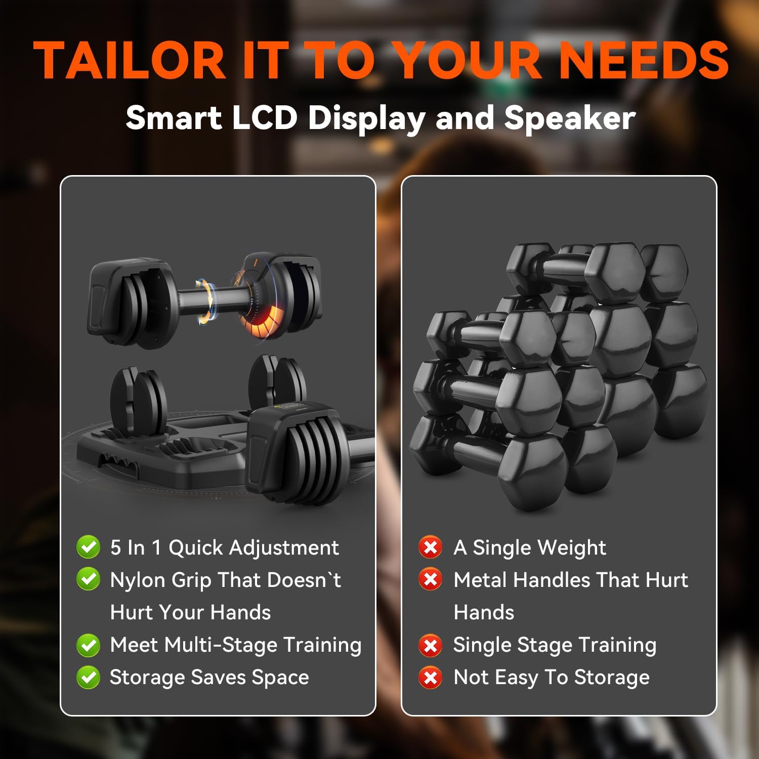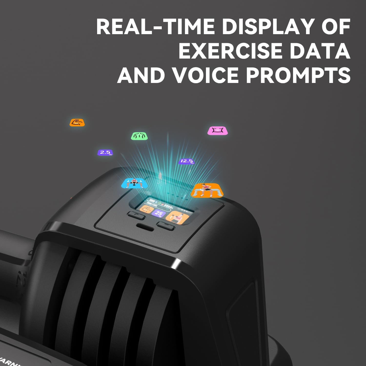 【INDEPENDENT TRAINING WITHOUT WORRIES】: Combining smart display screen, intelligent voice prompts, and professional exercise guidance, consumers can engage in professional and effective dumbbell training even without a trainer.