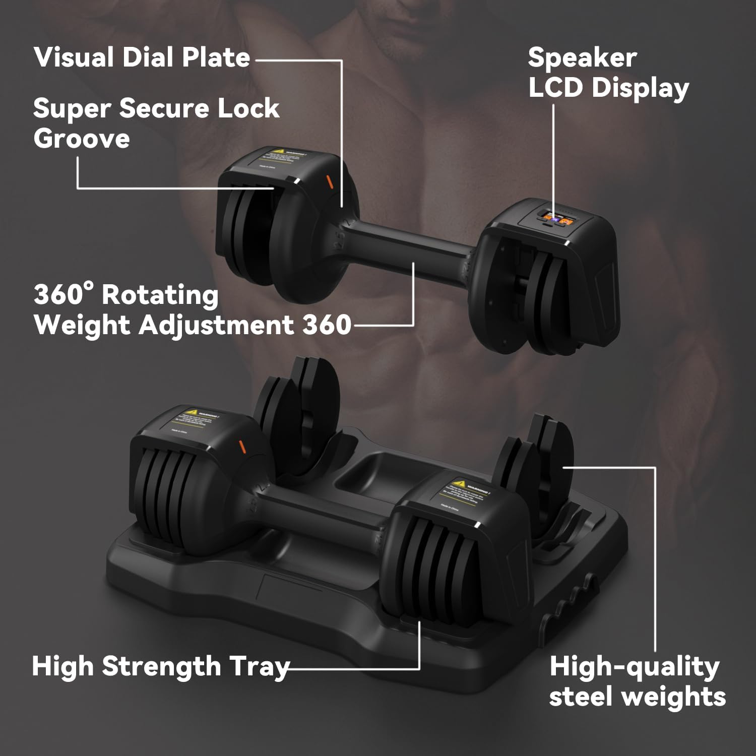 Smart Adjustable Dumbbell Set with Speaking Display – 2.5 to 12.5 Pounds Each – Home Gym Exercise Equipment – Visible Color Display for Workout Data Record – Total 25 lbs Weight Set (High Grade)