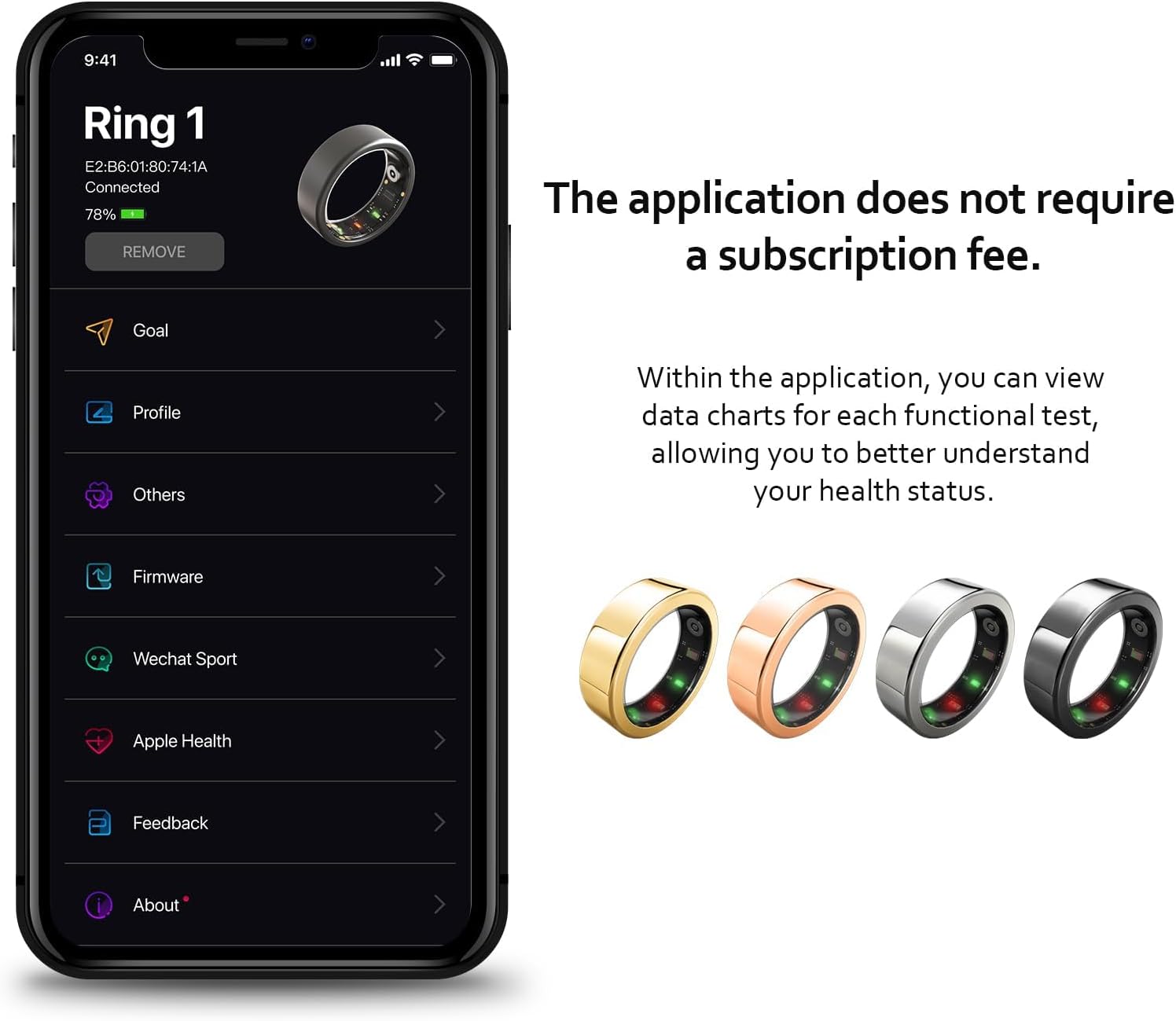💍No Subscription Fees: Smart Ring health tracker data can be easily viewed via a mobile app without subscription fees. Smart Ring supports Android 5.0 and iOS 10.0 and above systems.