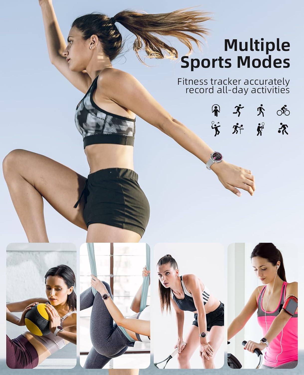 ⌚【IP68 Waterproof】The smart watch for women android can resist sweat, rain and other domestic water, and can meet your daily needs. Although the watch is waterproof, long-term immersion in water or high-pressure water flow may cause damage to the watch (because it has pores on the surface, which makes it difficult for water to evaporate), so it is not recommended to wear it while swimming or taking a hot shower.