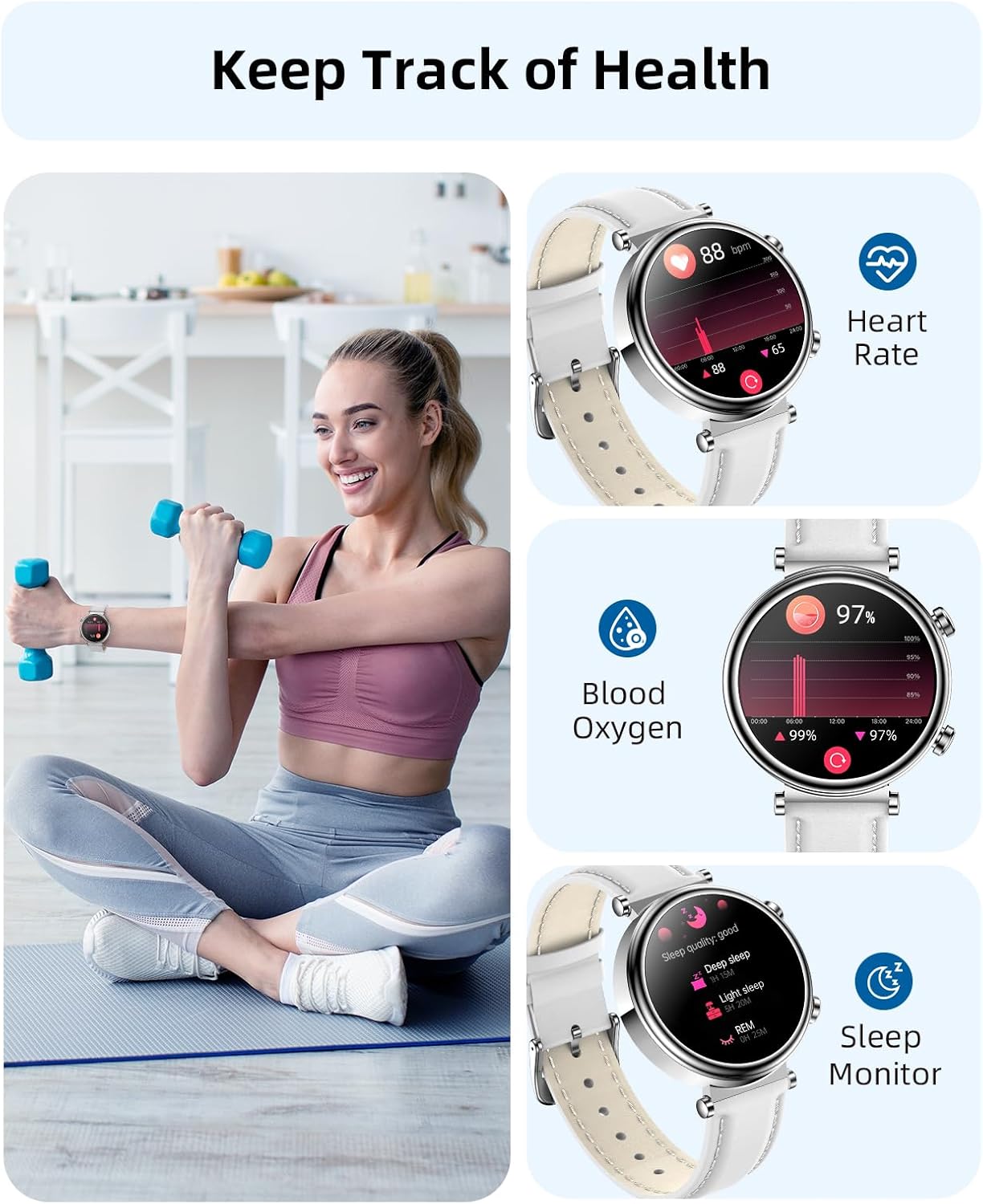 Smart Watch Fitness Trackers (Answer/Make Calls) -1.27″ AMOLED Display, 24/7 Heart Rate Blood Oxygen Blood Pressure Sleep Monitor, IP68 Waterproof Smartwatch for Women Android iPhone