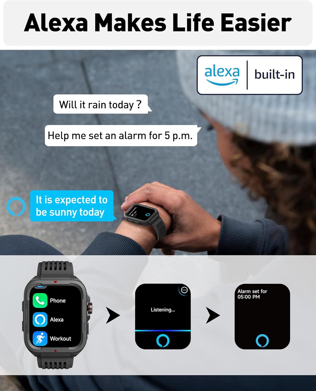 [Alexa Built-in & Health Monitoring Fitness Watch] Your fitness tracker allows you to communicate with Alexa, making your life simpler by seamlessly integrating with Alexa and being compatible with smart home devices.The smartwatch for man women offers various health monitoring features, including heart rate,sleep,blood oxygen monitoring, fitness Tracker Watch Your Wellness.