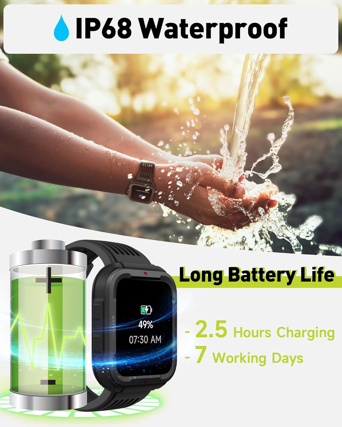 [IP68 Waterproof & Long Battery] With an IP68 waterproof rating, the activity tracker and smartwatch meet the needs of most sports enthusiasts.Smartwatch for iphone Android compatible (Android 6.0+ and iOS 9.0+), allowing you to customize settings such as brightness and wake-up function. The included magnetic charging cable ensures fast charging, with a battery life of up to 7 days.