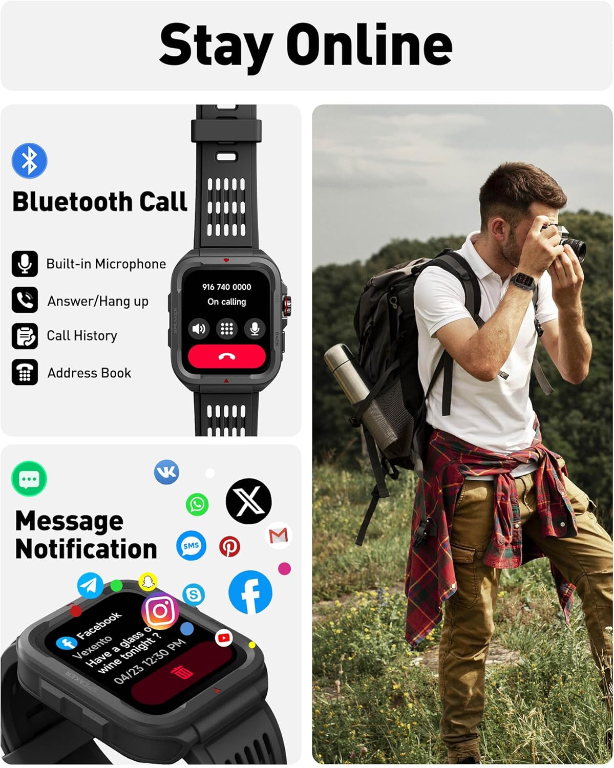 [Call function & Message notification] The smartwatch is equipped with a Bluetooth 5.3 chip, allowing you to use the call function and Message notification. The VRPEFIT smartwatch enables you to make and receive phone calls, as well as receive notifications for social media, email, and SMS messages directly . This ensures that you never miss an important message or notification, keeping you connected even when you are on-the-go.