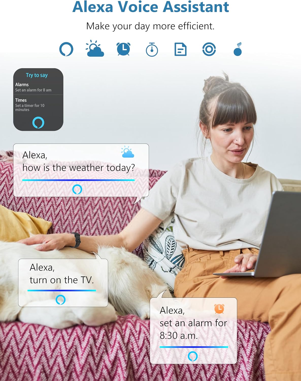 【Alexa Built-in】Download the ‘VeryFit’ app from App Store/Google play and connect your watch with smartphone(running Android 6.0+ or iOS 9.0+), you can enjoy the convenience of Alexa on your smart watch. You can use voice control or you can wake up Alexa by pressing and holding the power button or by calling the icon. Just speak into your watch to ask questions, set an alarm, control music, check the weather, control Alexa smart devices and more.