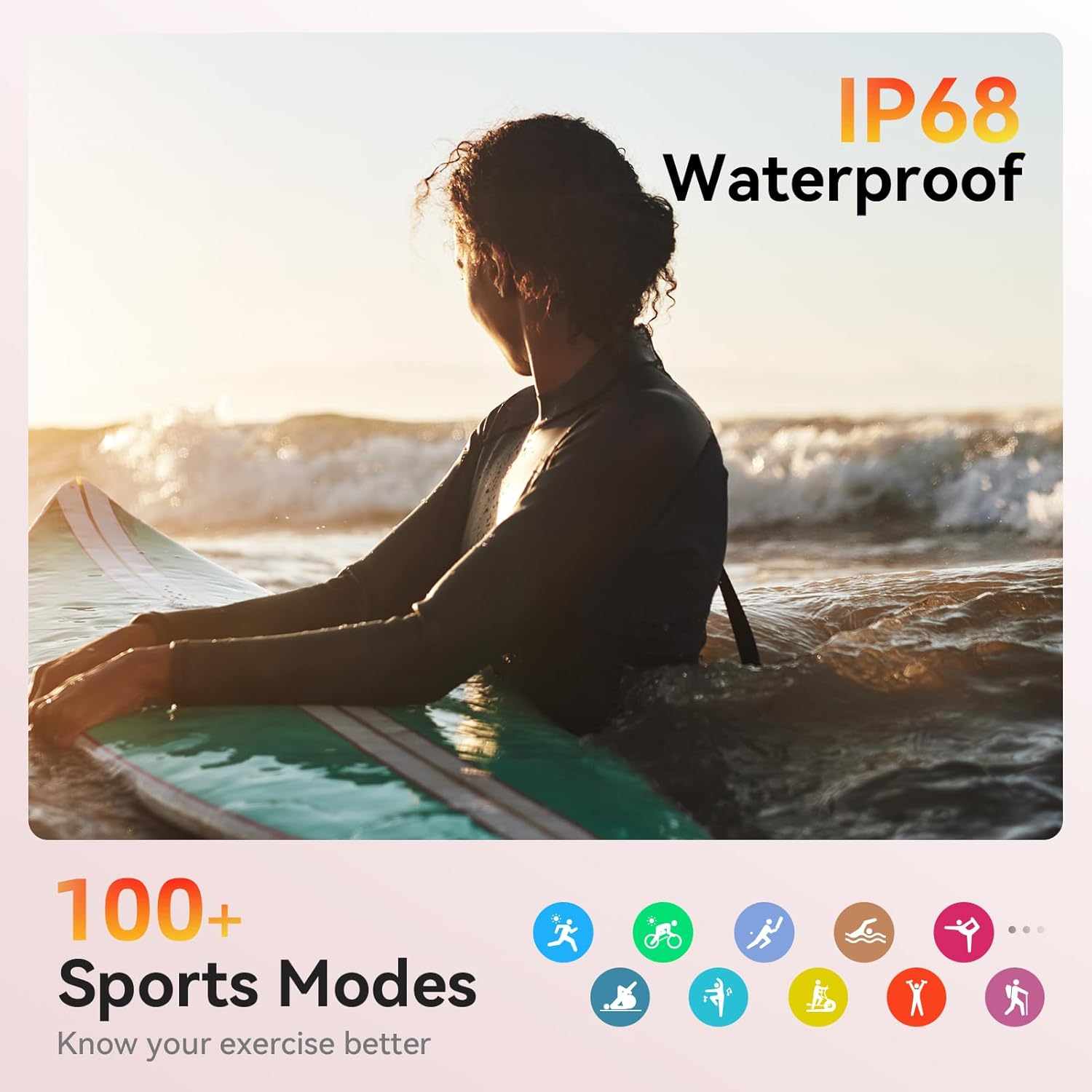 🏃【5ATM Waterproof Sports Modes Tracker】Fitness tracker smart watch With 5ATM water resistance, activity trackers meet most sports enthusiasts needs, anti-sweat, anti-rain, so don’t worry about when you washing your hands or even swimming or surfing. Supports over 100 sports modes tracking, such as running, rock climbing, cycling, yoga, and so on. Smartwatch provides fitness data, including calories, steps, distance, and workout time, making sure sweating more meaningful.