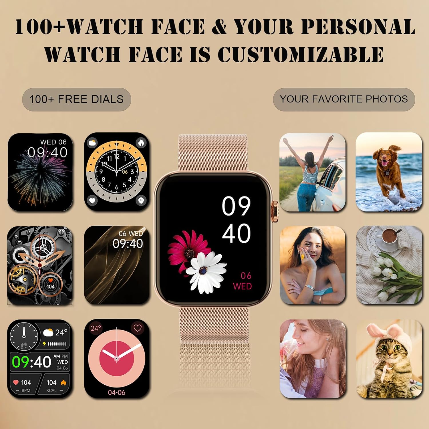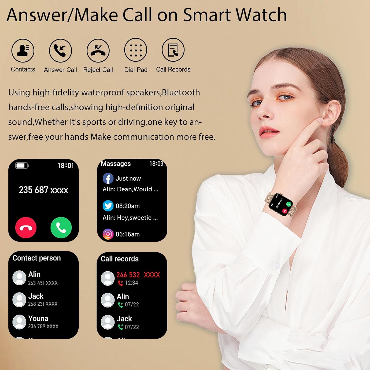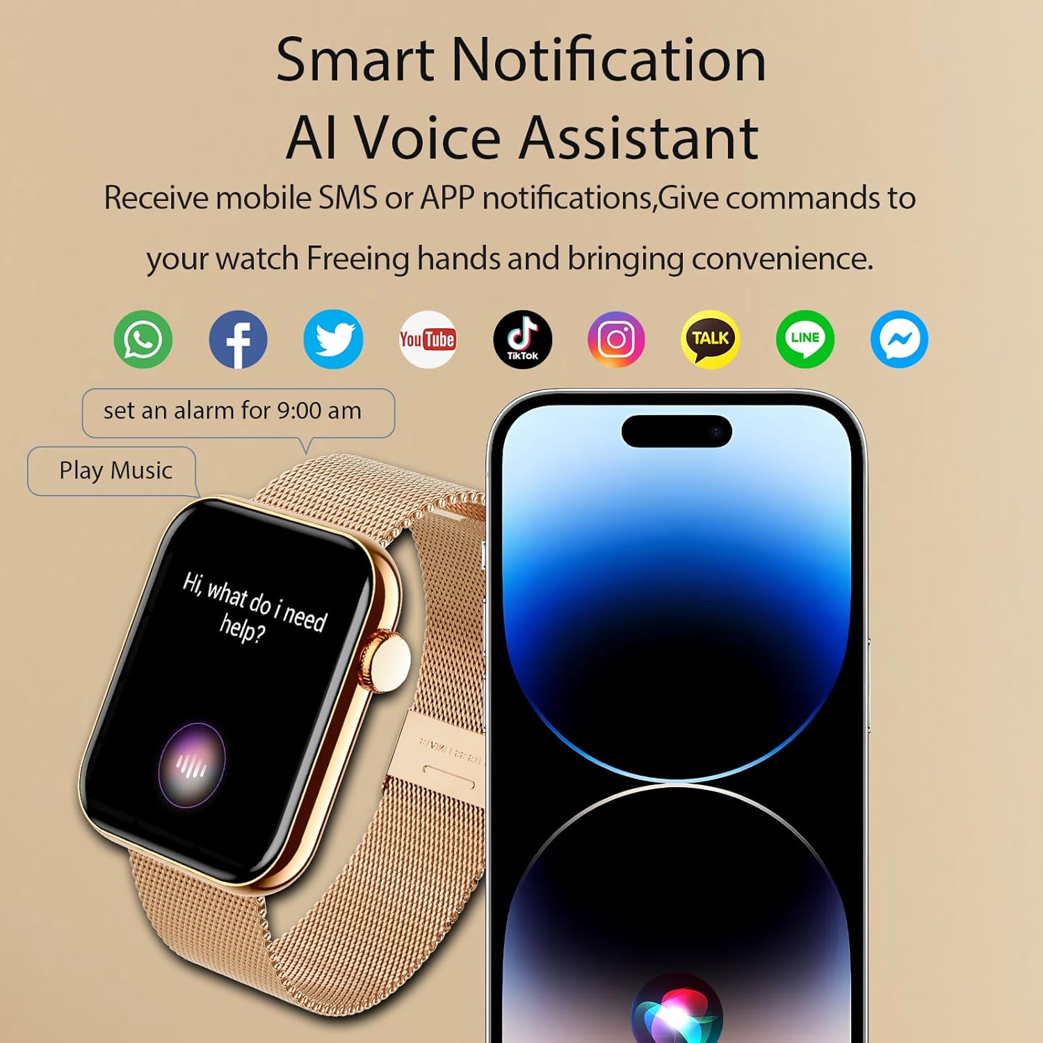 ①【Bluetooth Calls (Answering/Making Phone Calls)】The women smart watch supports answering or making calls and playing music. You can turn off the phone ringing and media audio in the watch settings. The 2023 upgraded smart watch is equipped with an AI voice assistant. then you can voice control the phone to make calls, search information, play music/videos and enter any app.