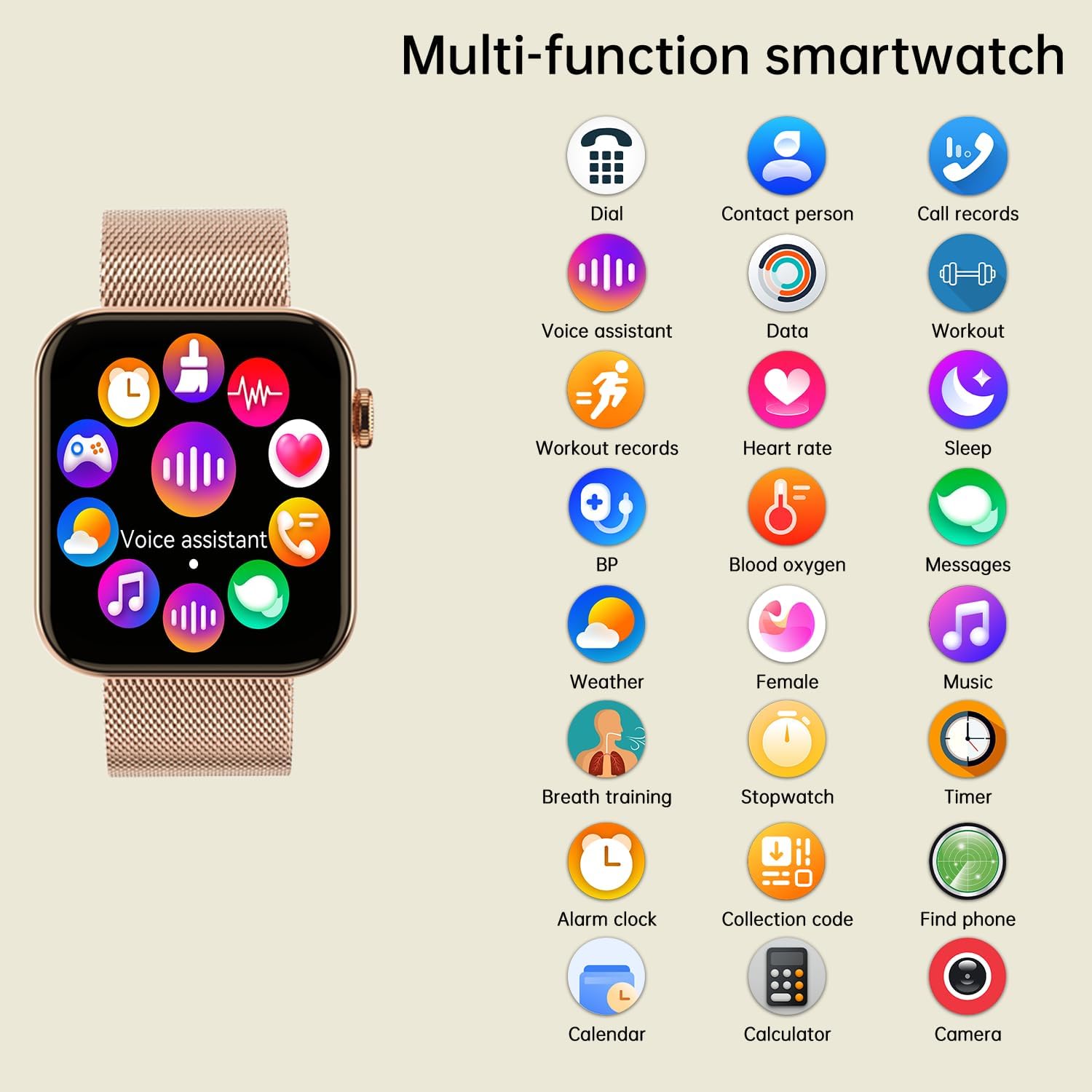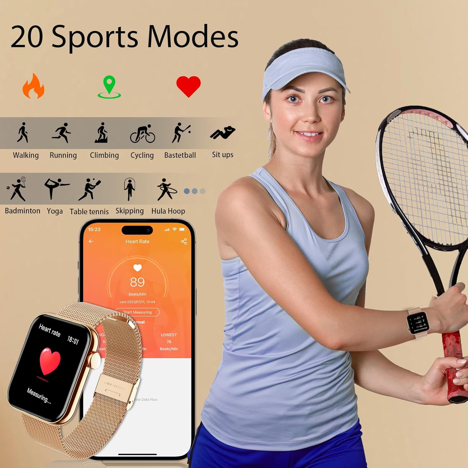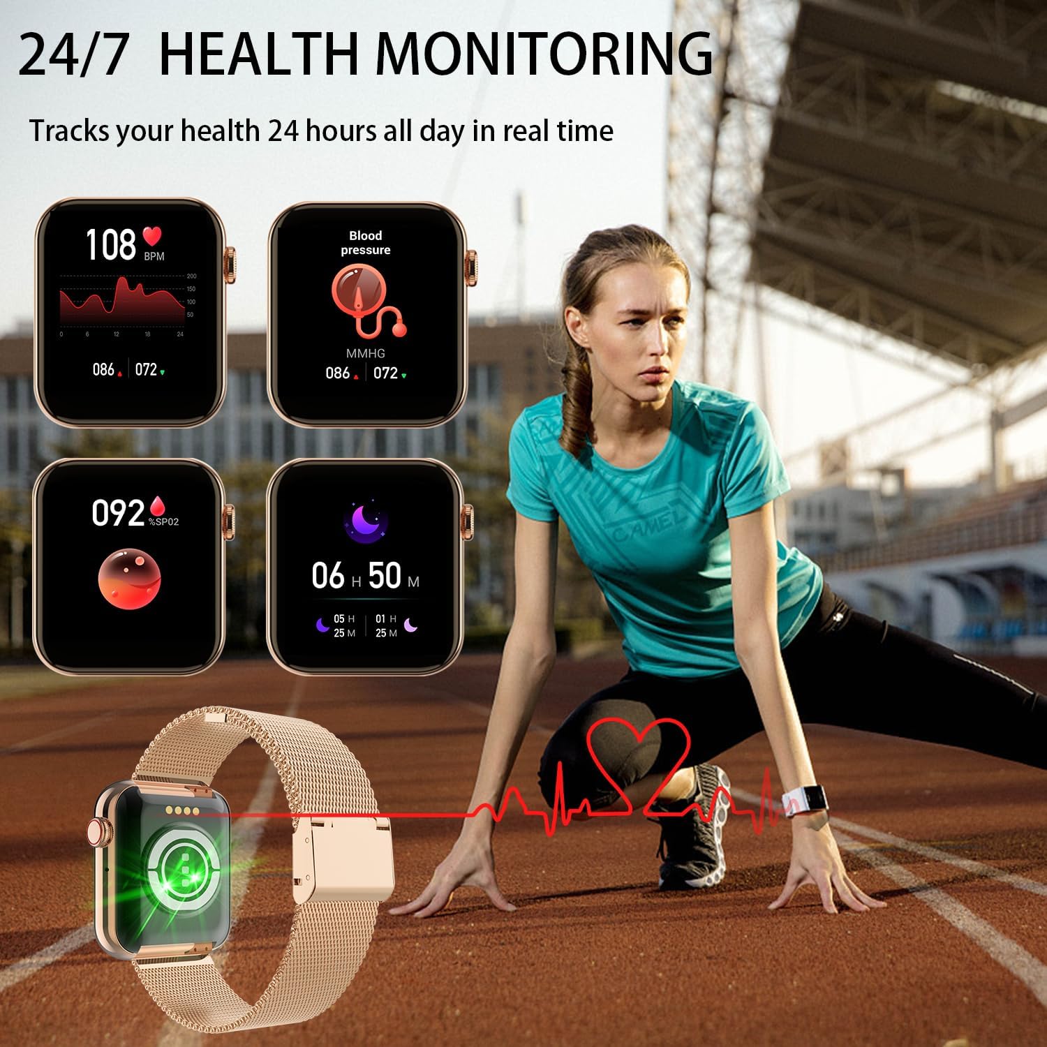 ①【Bluetooth Calls (Answering/Making Phone Calls)】The women smart watch supports answering or making calls and playing music. You can turn off the phone ringing and media audio in the watch settings. The 2023 upgraded smart watch is equipped with an AI voice assistant. then you can voice control the phone to make calls, search information, play music/videos and enter any app.