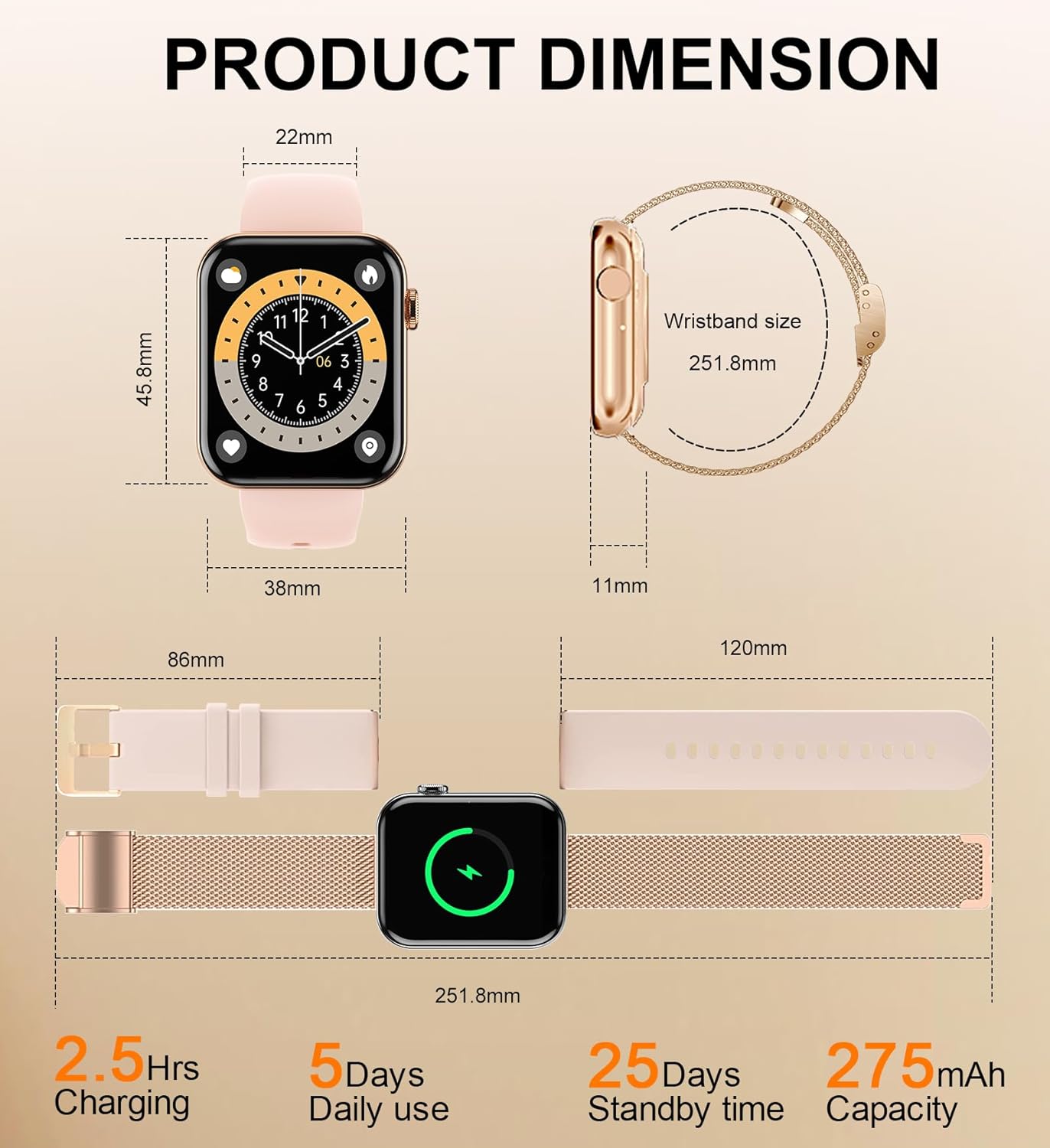 ②【Stylish Smart Watch For Women & Men】HXQHSTBG Smart Watch for Women is the perfect gifts, whether for Christmas, Easter or other festivals or birthdays, it is the most suitable gift for women. Come with a rosegold stainless steel watch band and an extra silicone pink band for optional with your different outfit. you’ll stay fashionable while staying connected.