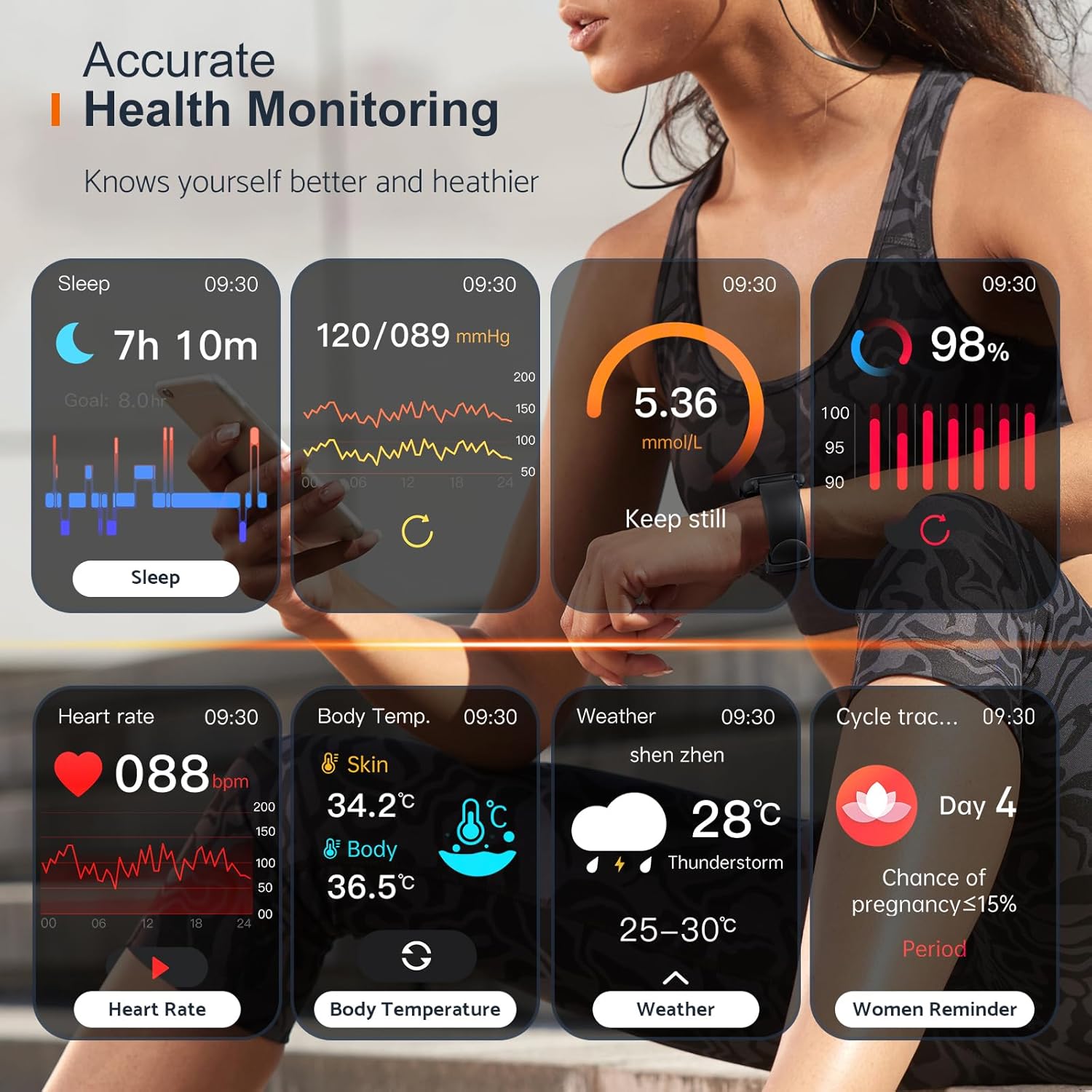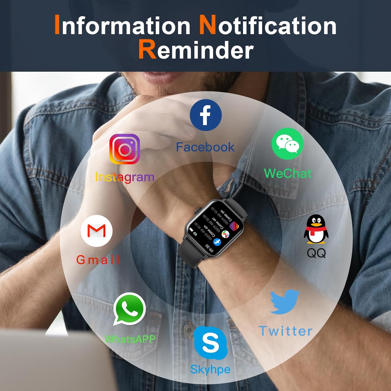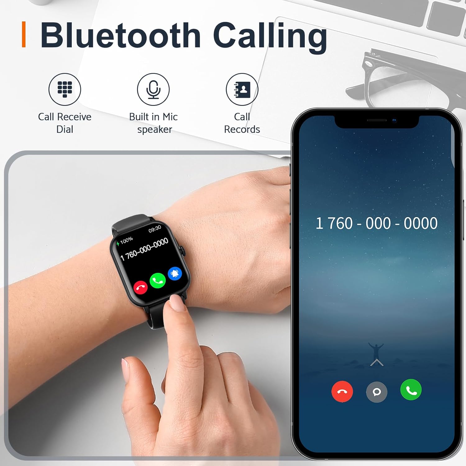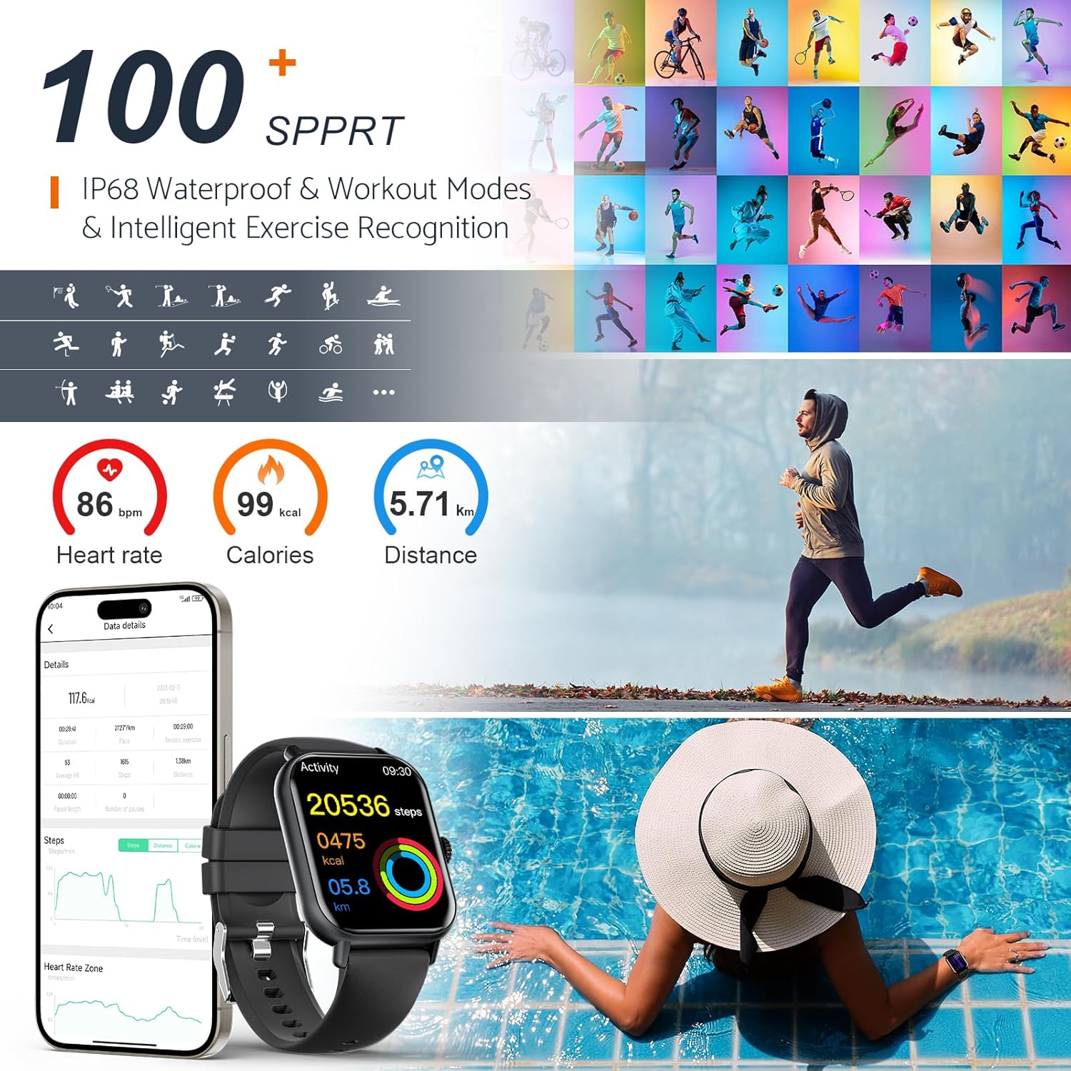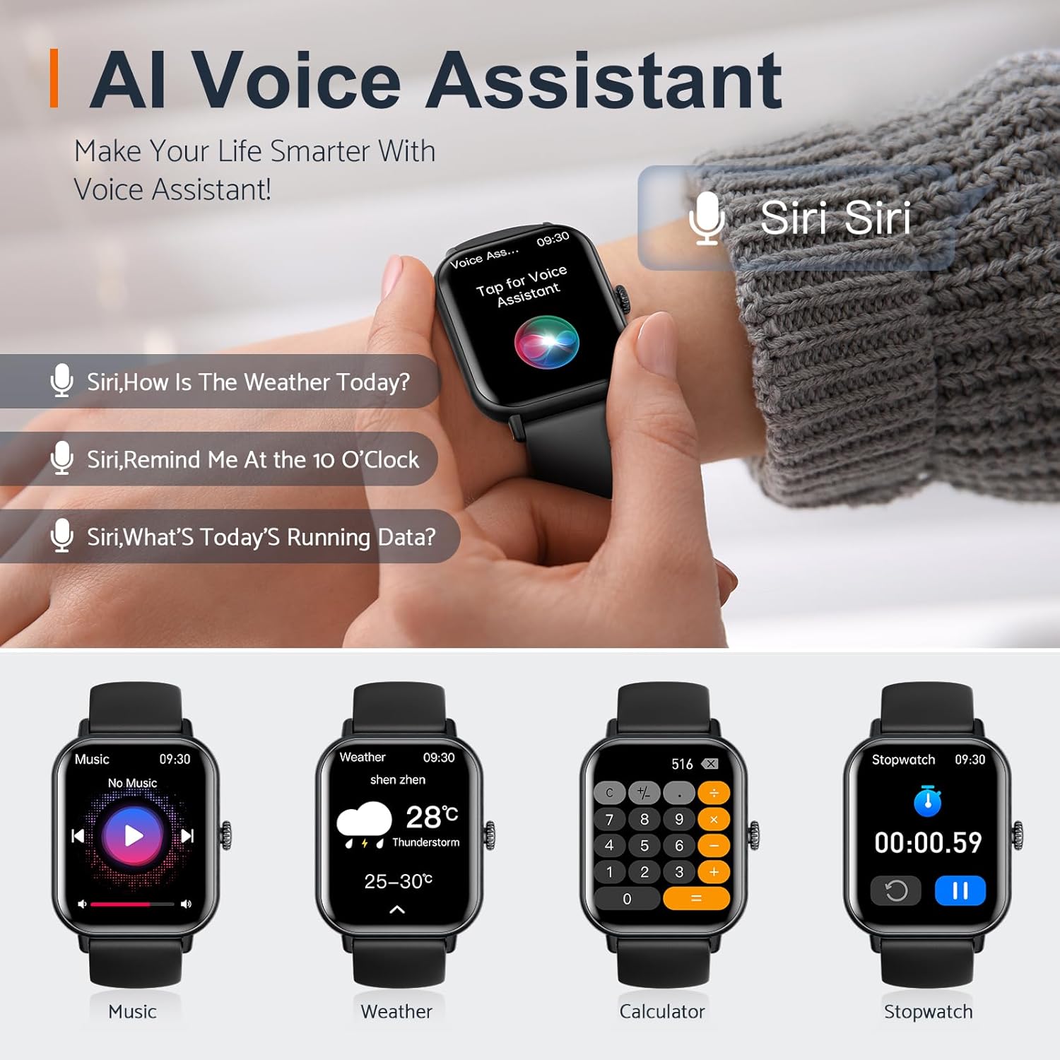 ⌚【AI Voice Control & Bluetooth Calling for Smart Watch】Integrate your life with AI Voice Control on your wrist. Ask questions, control music, check the weather, and more. With Bluetooth 5.3, you can also answer/make clear calls directly from your smart watches when your phone is out of reach. Enjoy clear Bluetooth calls up to 10 meters away from your phone, enhancing your hands-free experience. (THE WATCH CAN NOT SEND MESSAGES, or TEXT BACK, Bluetooth distance 8-10 meters).