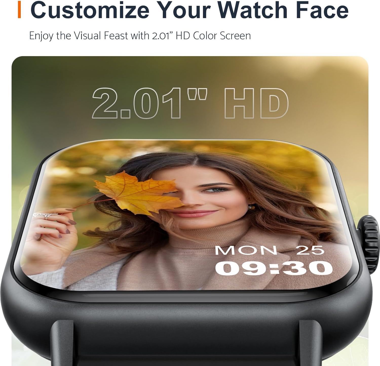 📞【Enhanced Visual Experience with 2.01″ HD Screen & 100+ Watch Faces】Discover the ultimate smart watch that combines style and technology, featuring a 2.01-inch HD colorful display for superb picture quality and touch sensitivity. Choose from over 100 watch faces or personalize it with your favorite photo for a unique touch.