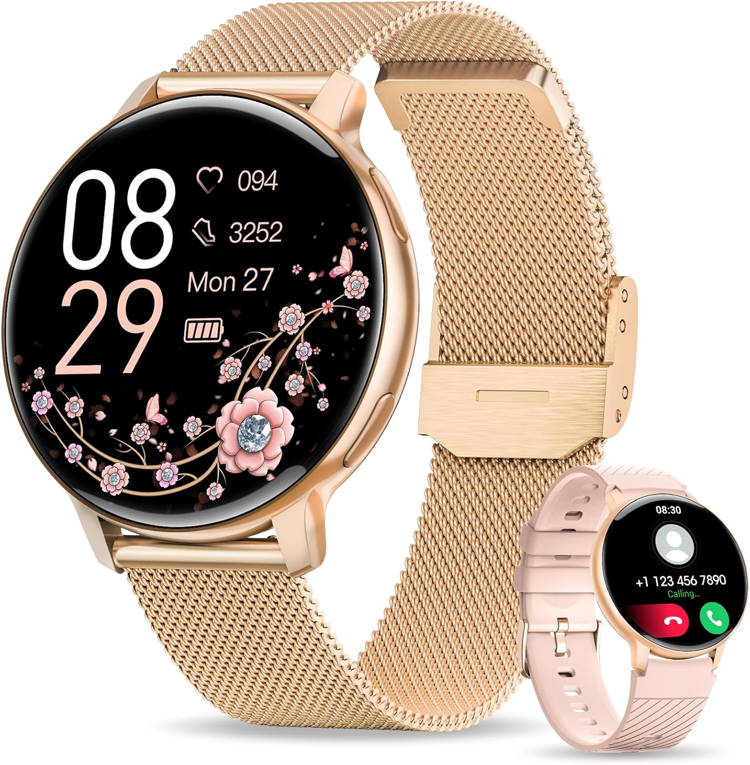Designed for Women: The 2024 next-generation debut smart watch for women features a 1.39-inch always-on screen with a high-resolution display of 360×360 and gently curved 2.5D glass. It’s designed to be lightweight at only 47g, making it comfortable for all-day wear. It comes with both a rose gold 316L stainless steel strap and a soft pink silicone strap, perfect for any occasion.