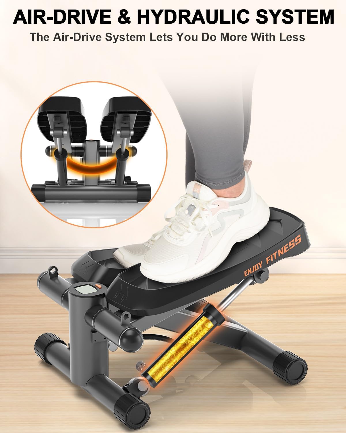 10DB Super Quiet with Air Drive System: This progressive stair stepper did away with the traditional, cheap pulley design and is equipped with a splendid Air-Drive System, which makes it much more labor-saving and quieter (Less than 10DB) compared with other pulley-drive steppers. This upgrade will make you get twice the results with half the effort during the exercise process.