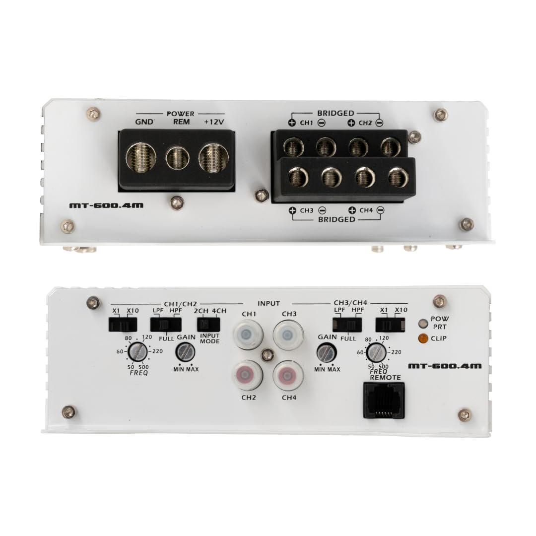 Crossover Multiplier (MT-600.4): Allows you to run tweeters or mid-range speakers without an external crossover.