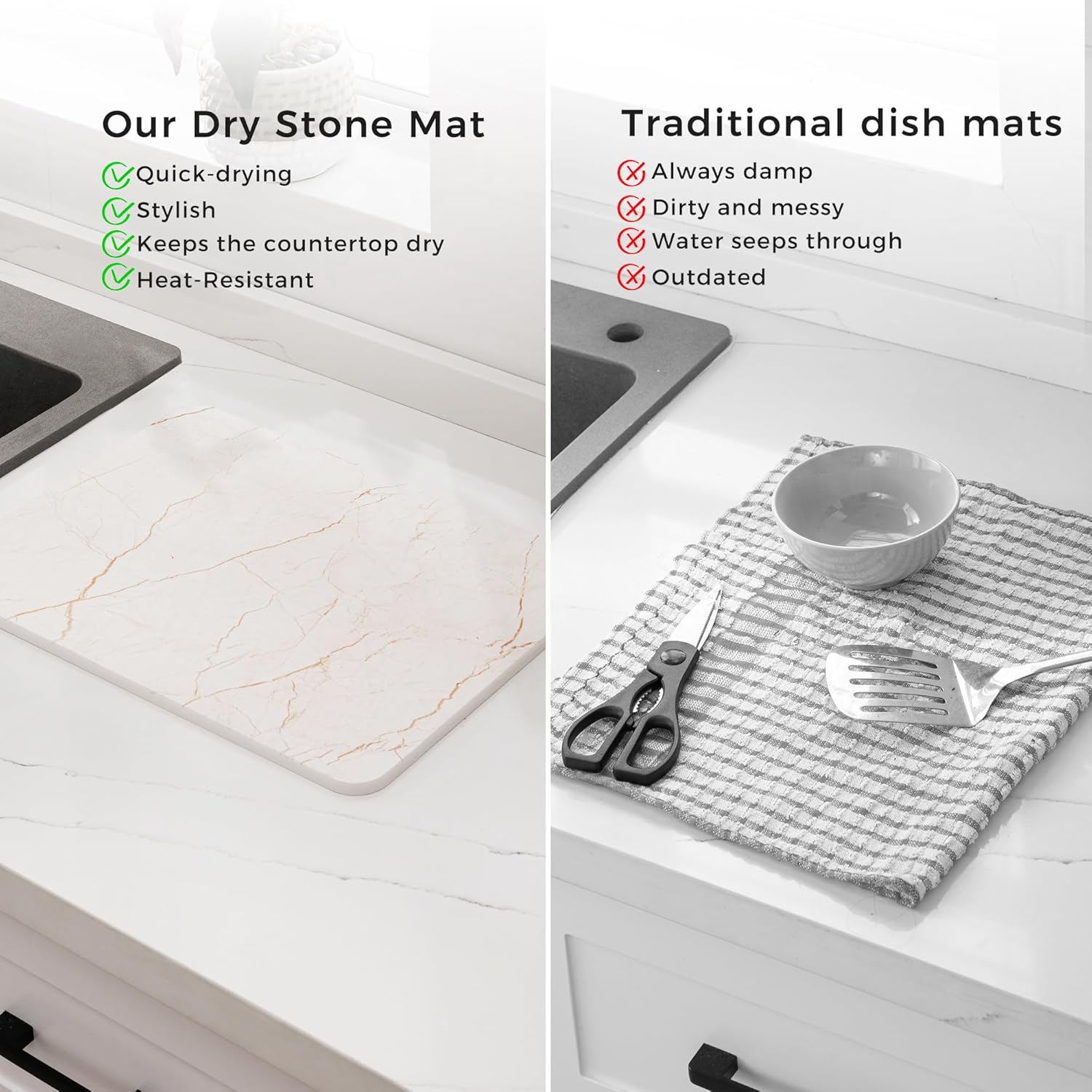 Stone Dish Drying Mat Super Absorbent Fast Drying Diatomaceous for Kitchen Counter – Rack Matt for Bottles Cups Ideal for Coffee Bar Home Decor Kitchen Accessories Appliances Gadgets
