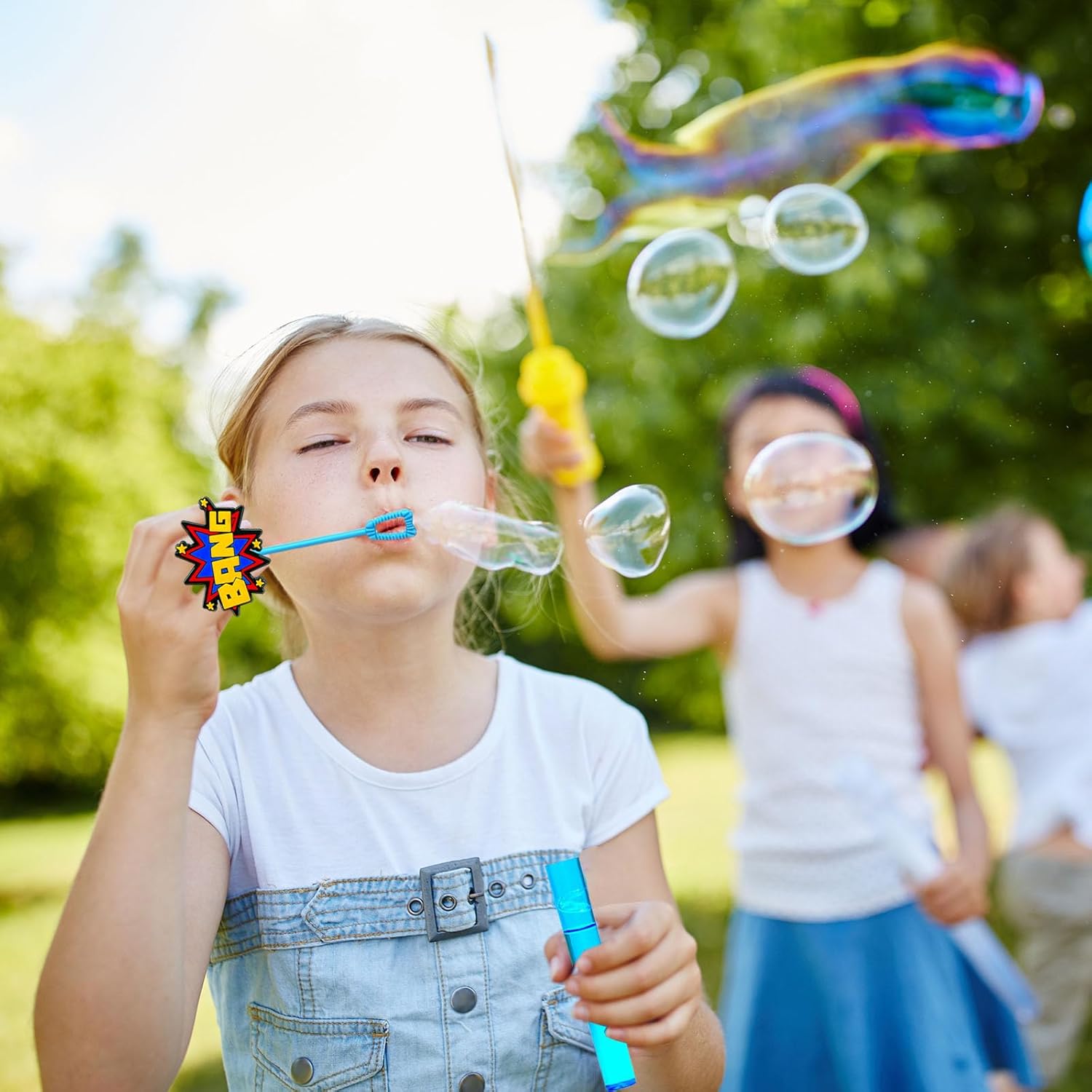 Safe-These bubbles wand filled with high-quality bubble soap liquid that creates many bubbles.It is safe and will not irritate their skin