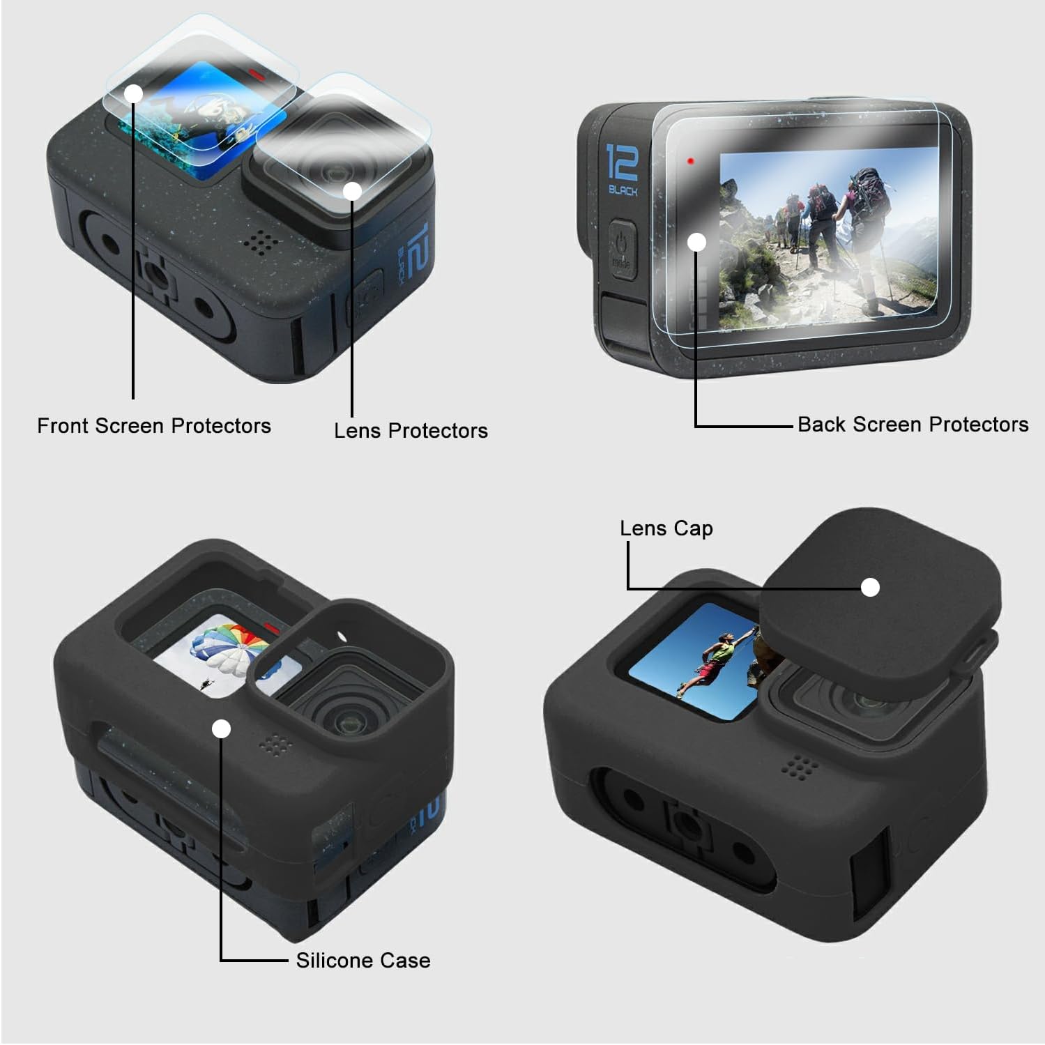 【Perfectly Compatible】This silicone protective case not only effectively prevents your camera from being scratched, but also has excellent dustproof, shockproof and anti-slip functions, providing comprehensive protection compatible for gopro hero 12/hero 11/hero 10/hero 9 black.