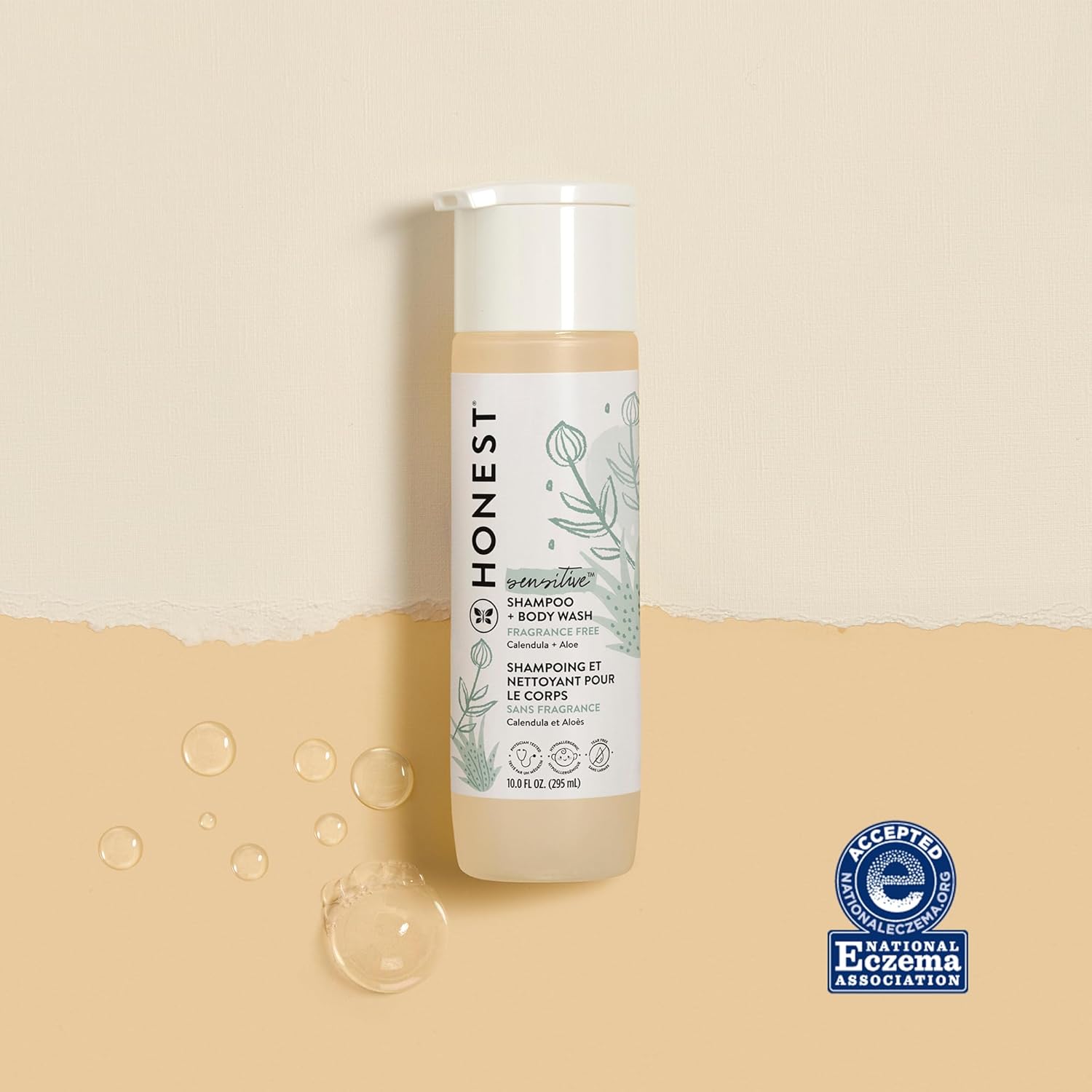 The Honest Company 2-in-1 Cleansing Shampoo + Body Wash | Gentle for Baby | Naturally Derived, Tear-free, Hypoallergenic | Fragrance Free Sensitive, 10 fl oz