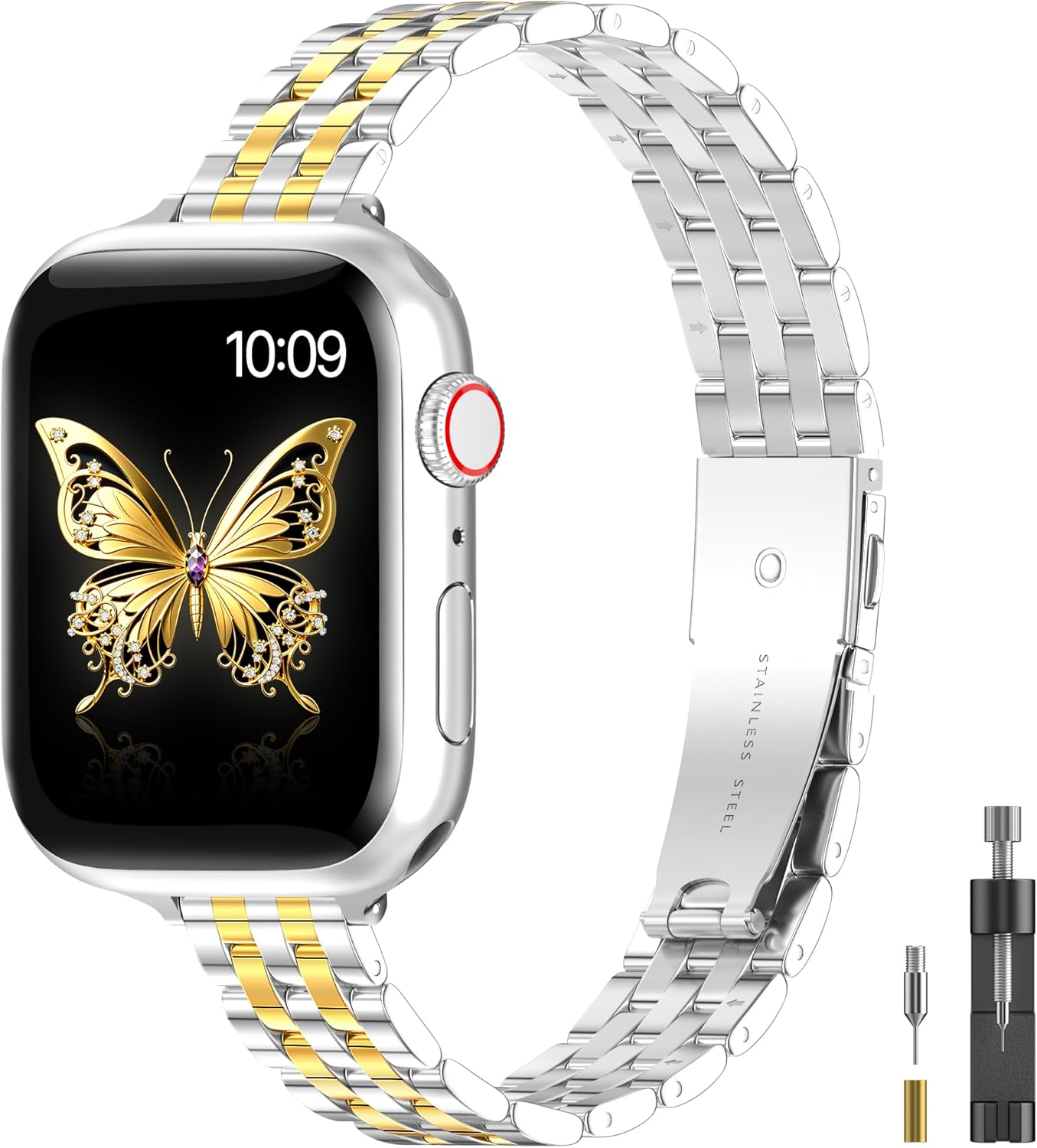 Thin Metal Band Compatible with Apple Watch Bands for Women 41mm 40mm 38mm 45mm 44mm 42mm 49mm,Slim Dressy Stainless Steel Strap for iWatch Bands Ultra Ultra 2 SE SE2 Series 9 8 7 6 5 4 3 2 1