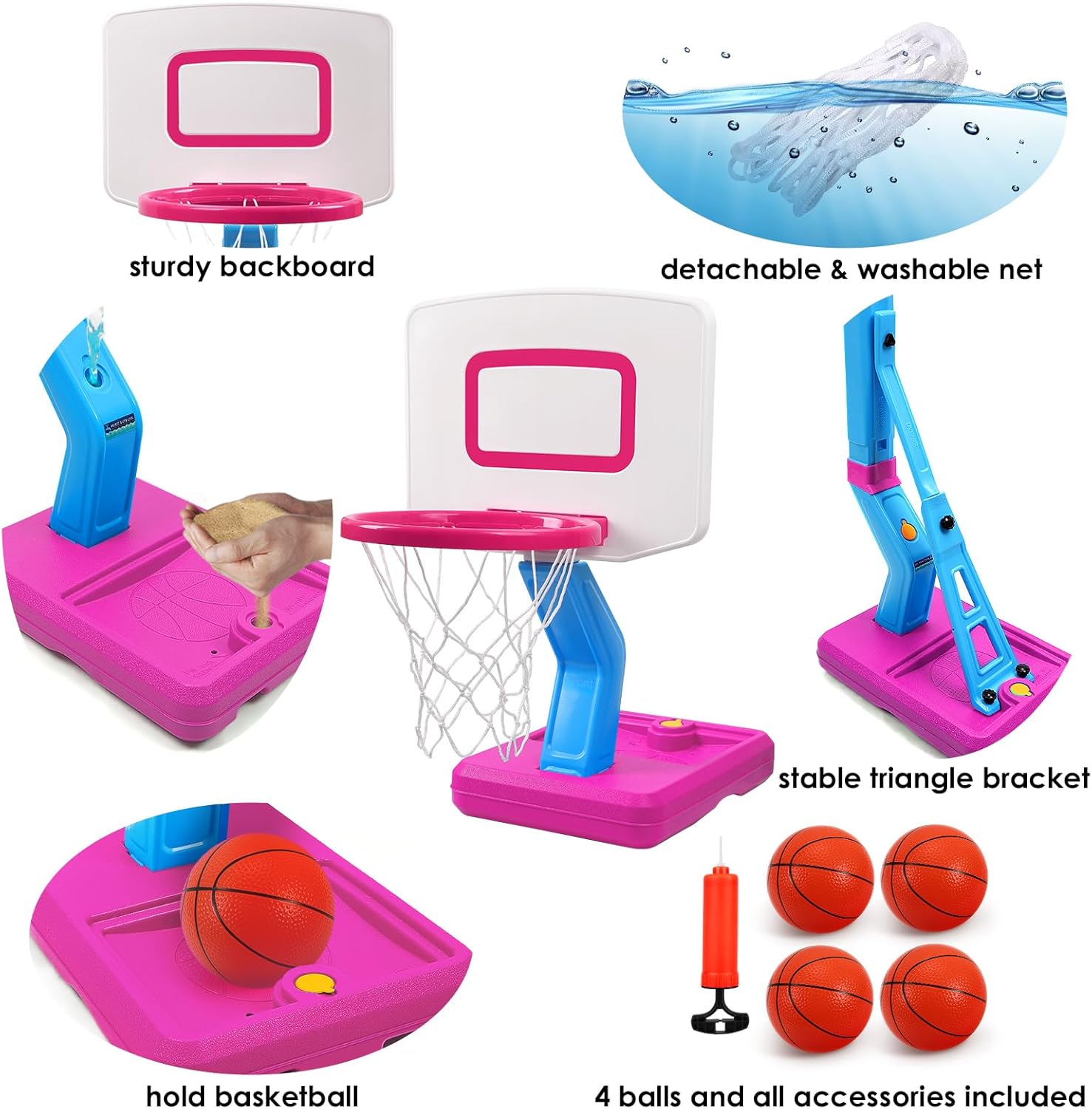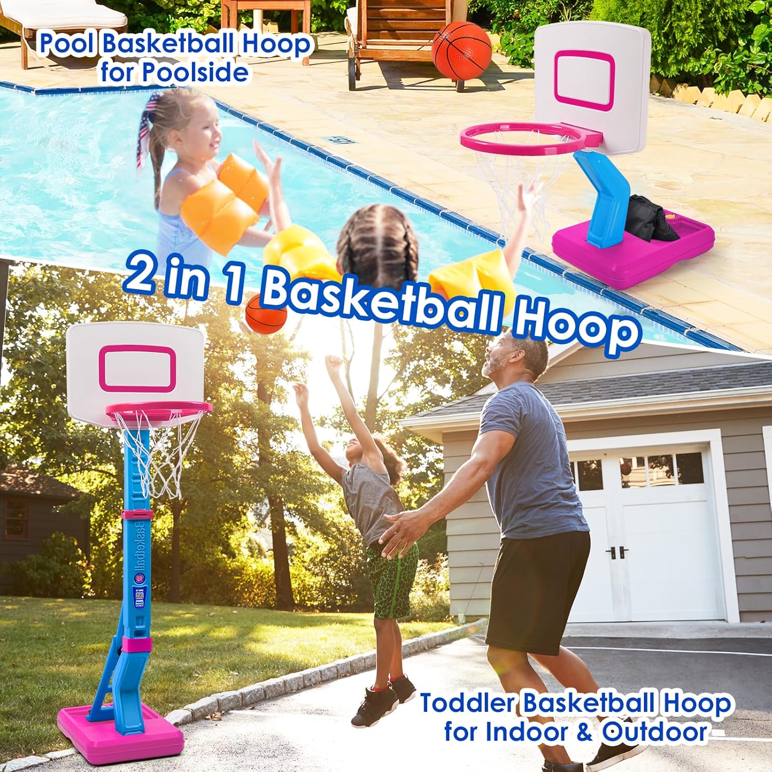 Toddler Basketball Hoop Indoor/Outdoor Kids Mini Poolside Basketball Goal with 4 Balls Adjustable Height Basketball Game for Toddler Kids, Christmas Birthday Gift for Boys Girls Age 3 4 5 6 7 8