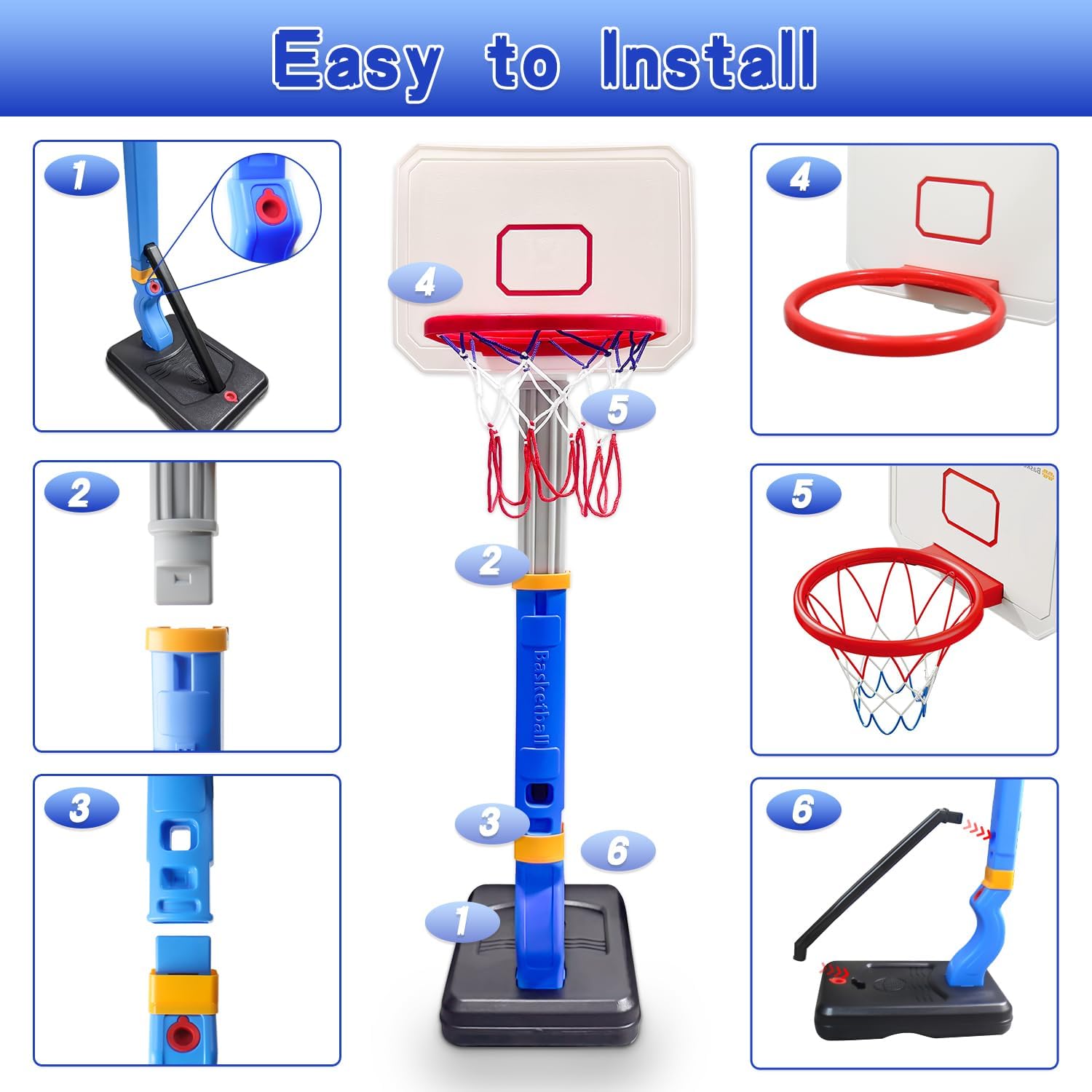 [ Easy to Assemble ] – The baby basketball hoop comes with all necessary accessories, so you can quickly assemble the basketball toys for toddlers 3-6 boys and be playing basketball in no time.