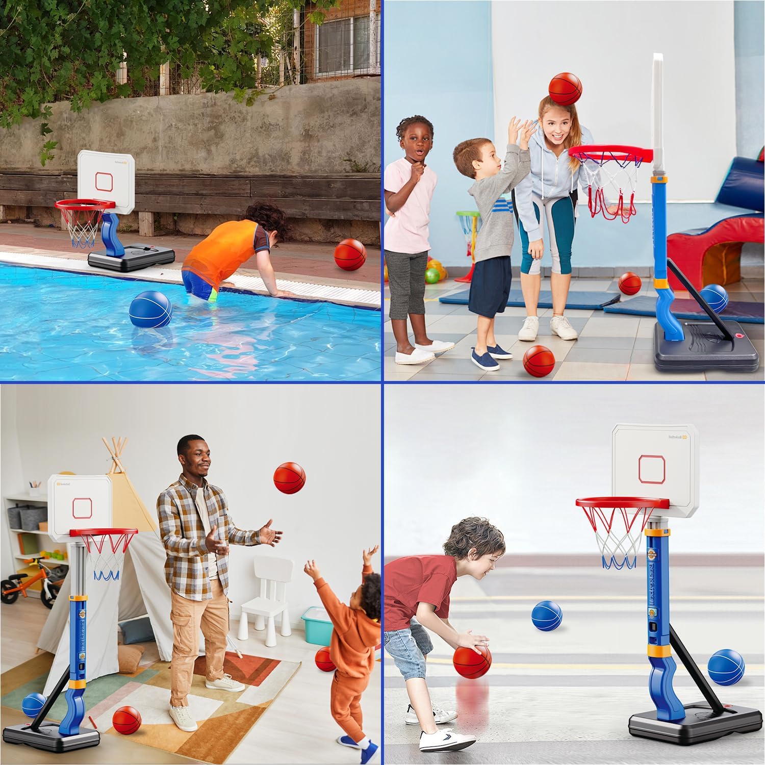 Toddler Basketball Hoop Set, Indoor Mini Basketball Hoop Poolside Basketball Stand Height Adjustable Outdoor Basketball Toys with 4 Balls, Pump for Kids Age 3 4 5 6 Birthday Gifts