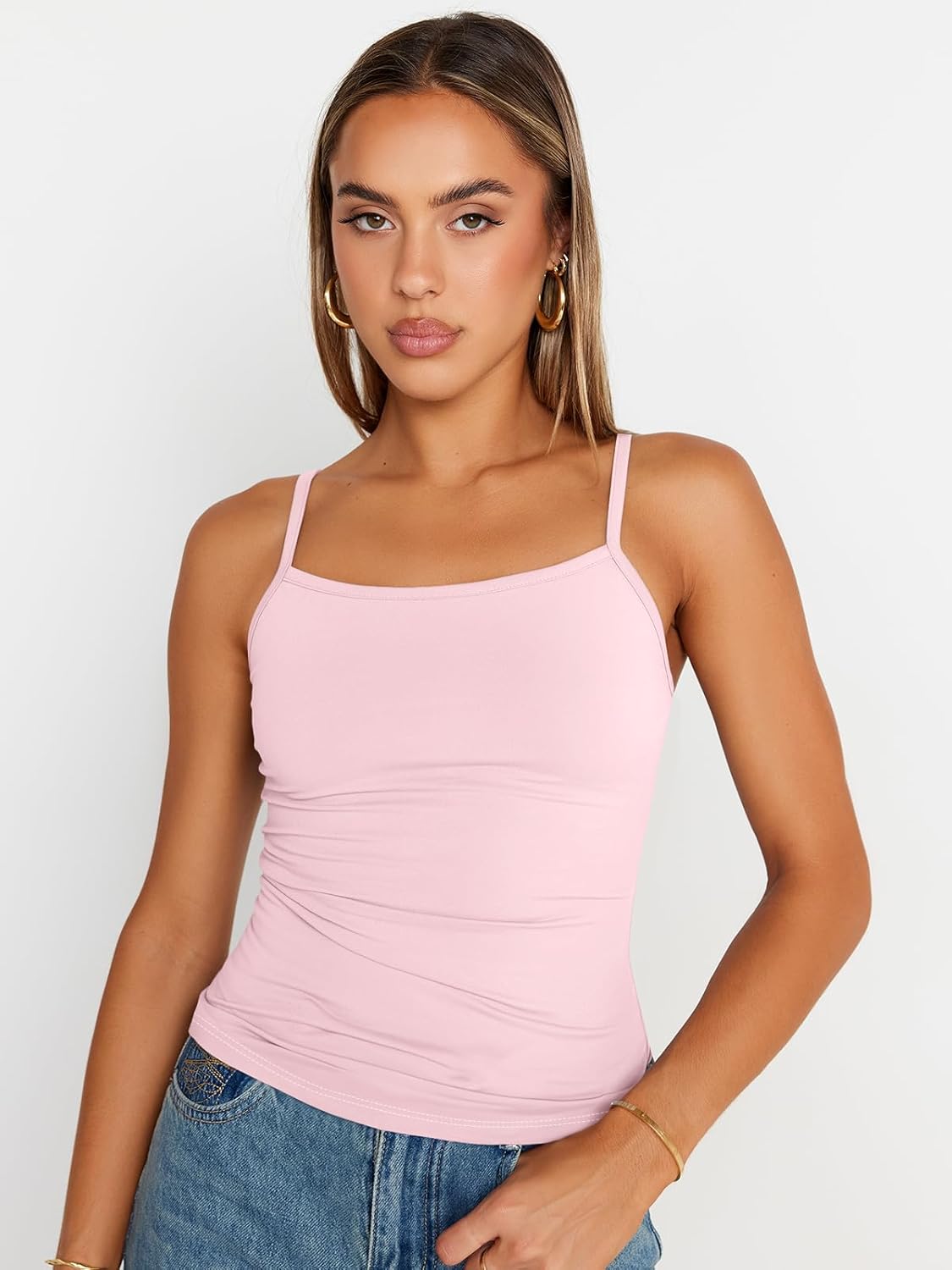 Trendy Queen Womens Summer Camisole Sleeveless Square Neck Tank Tops Basic Shirt
